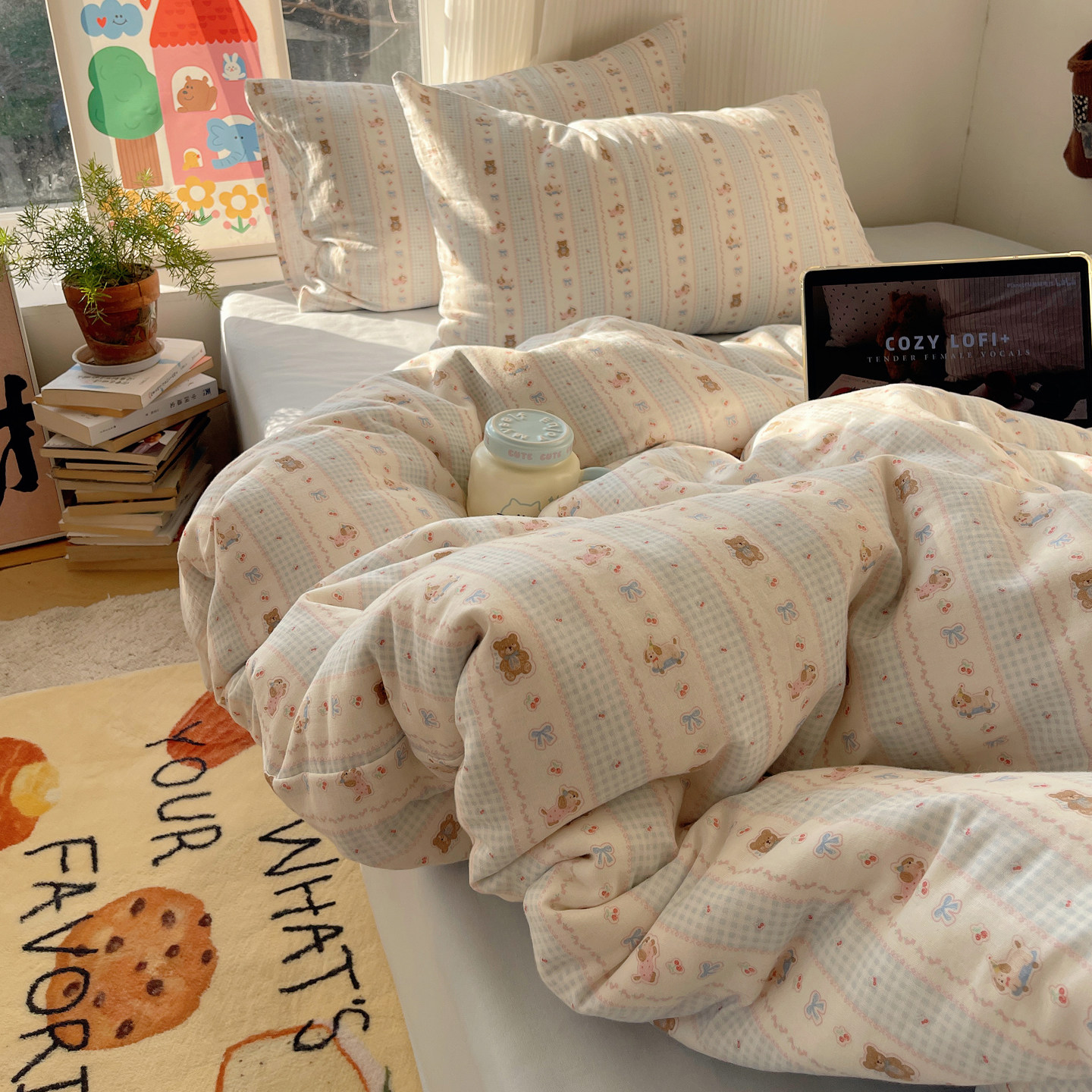 可爱风小碎花三四件套全棉床上用品被套床单学生宿舍纯棉床品套件