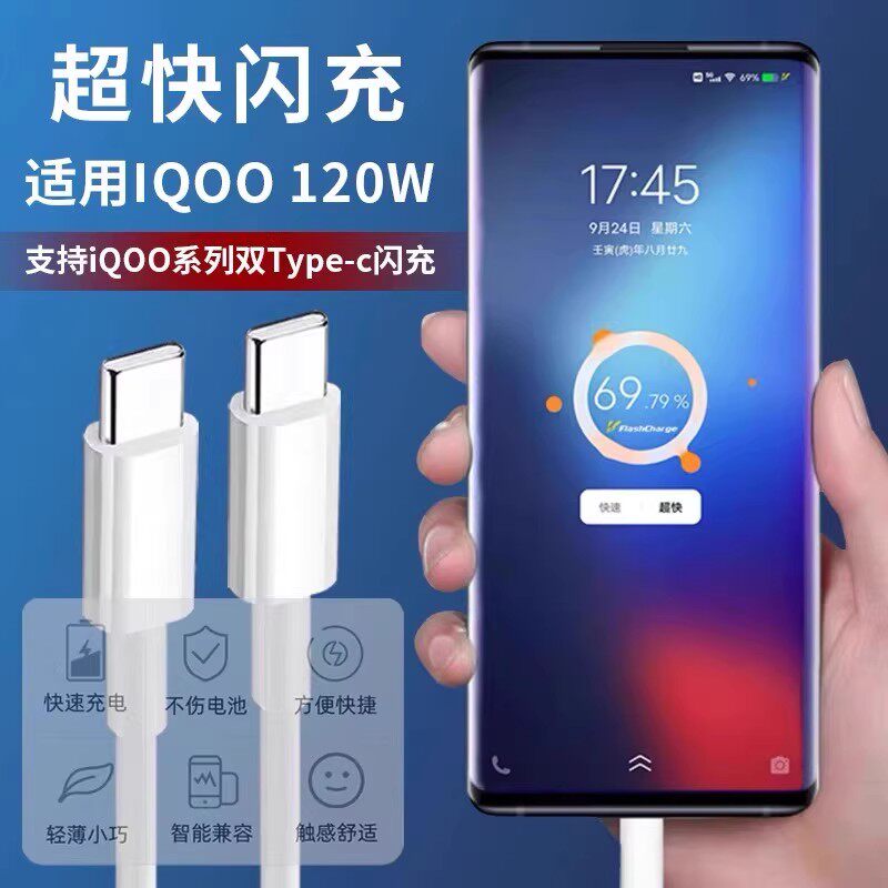 适用vivoiQOOZ10 Turbo数据线120W超级闪充iqooz10x充电线爱酷iQOOz10turbo pro+手机数据线6A双C加长2米线