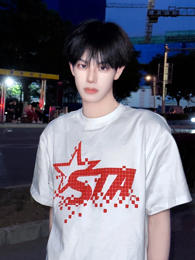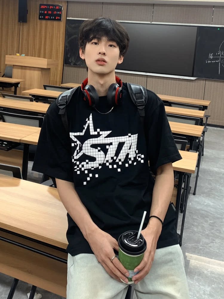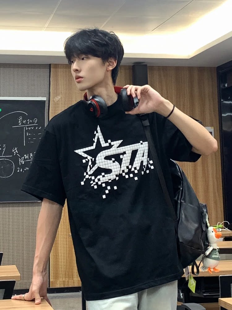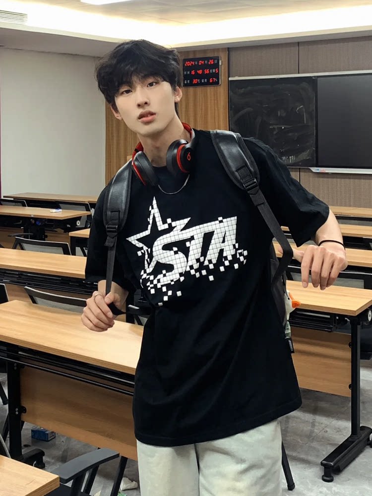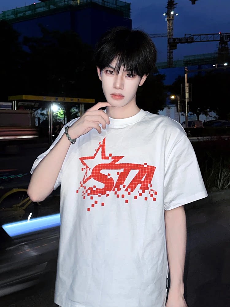 STA国潮美式字母星星短袖T恤男女夏季新款潮牌高街OS重磅情侣上衣