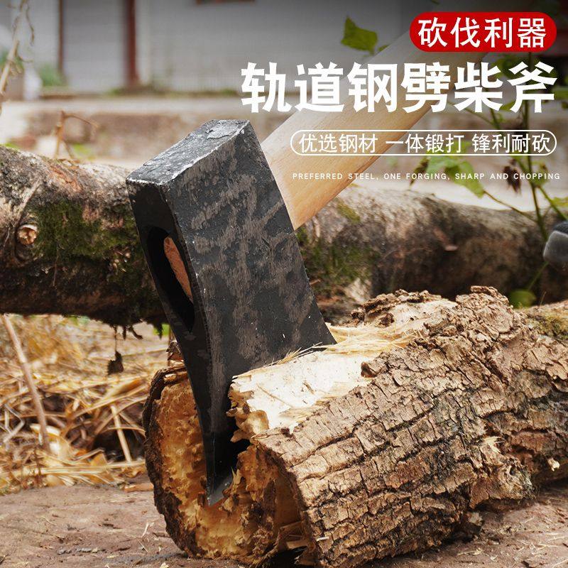 锻打劈柴斧头专用特大号轨道钢家用砍树开山伐木消防木工户外斧子