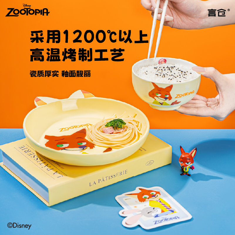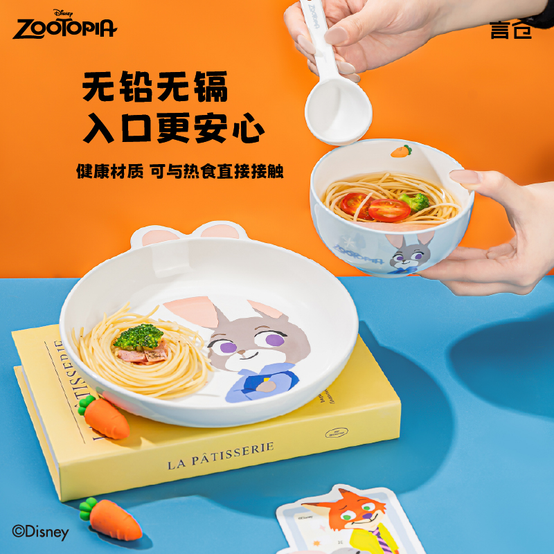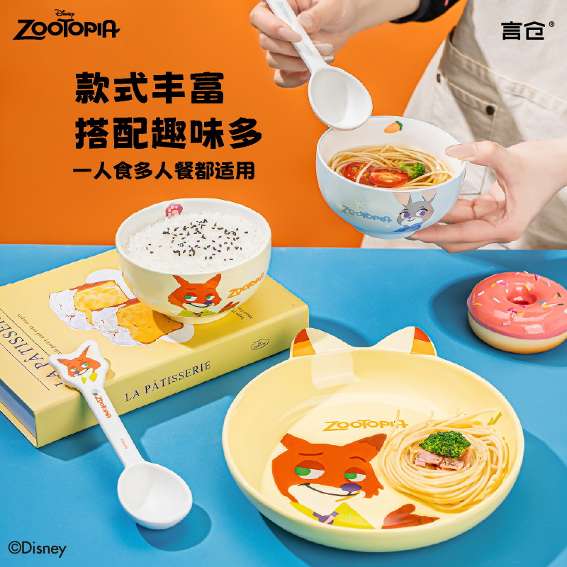 言仓迪士尼疯狂动物城餐具陶瓷耐高温微波炉可爱碗盘勺子圣诞礼物
