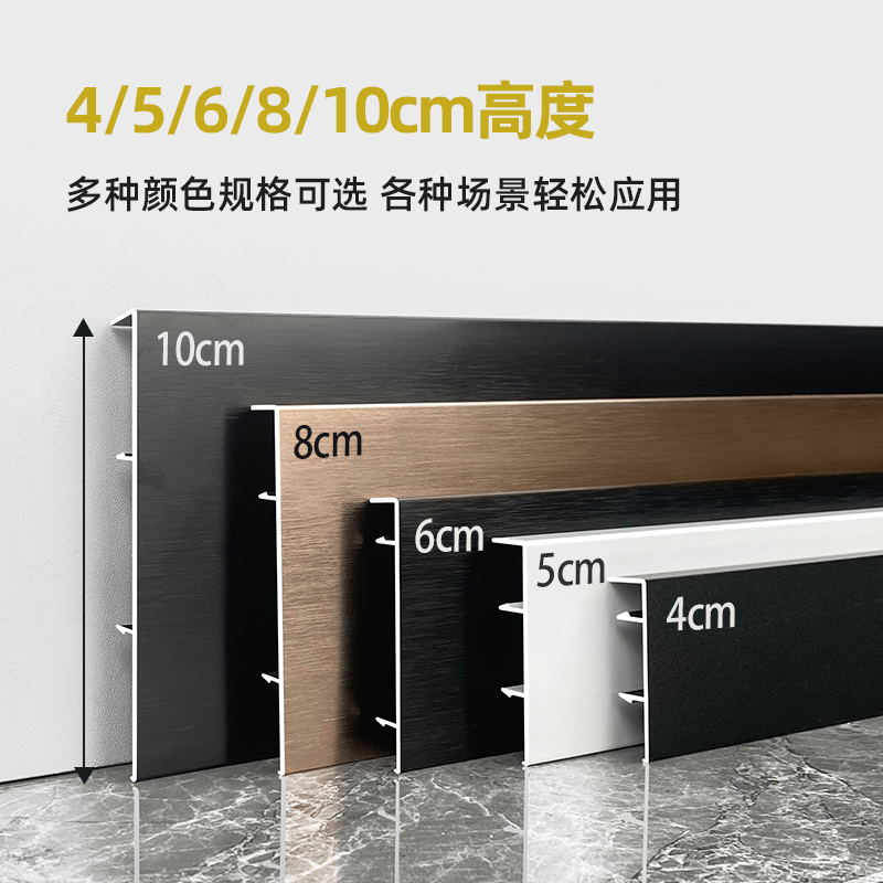铝合金踢脚线经典卡扣式防水贴墙角线条6cm10公分4金属工装地脚线