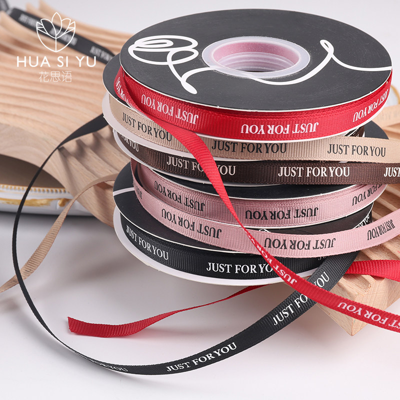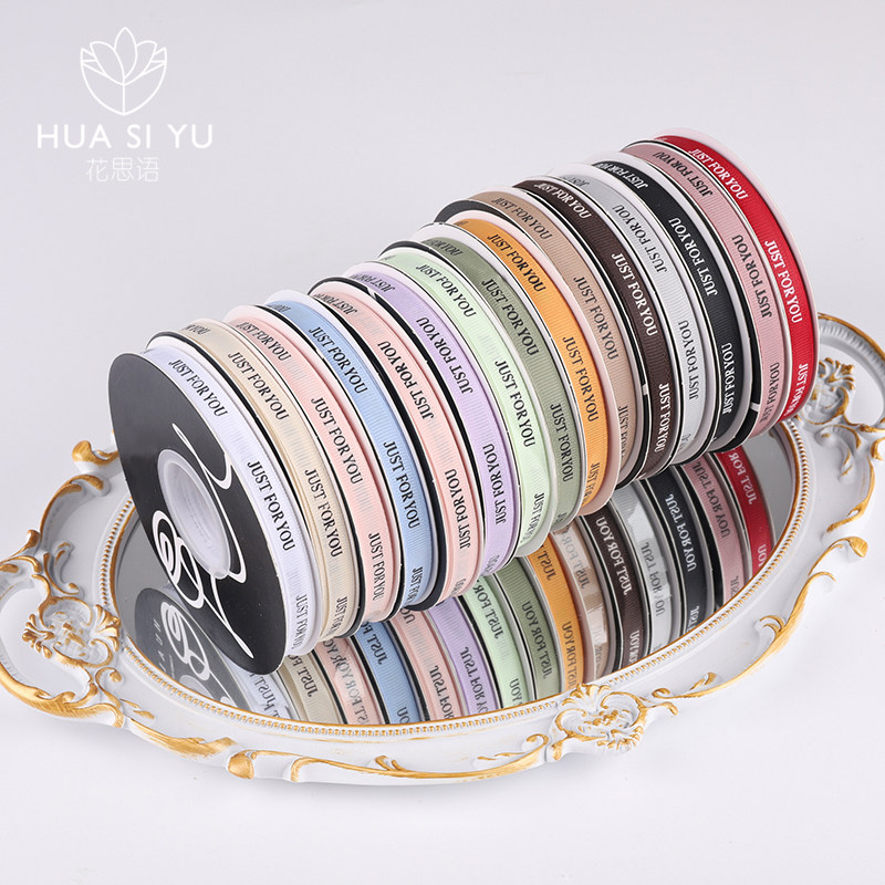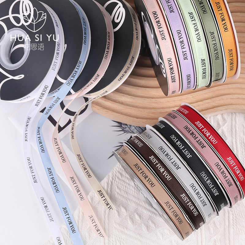 1cm英文丝带彩带just for you螺纹带鲜花束装饰包装字母缎带花艺