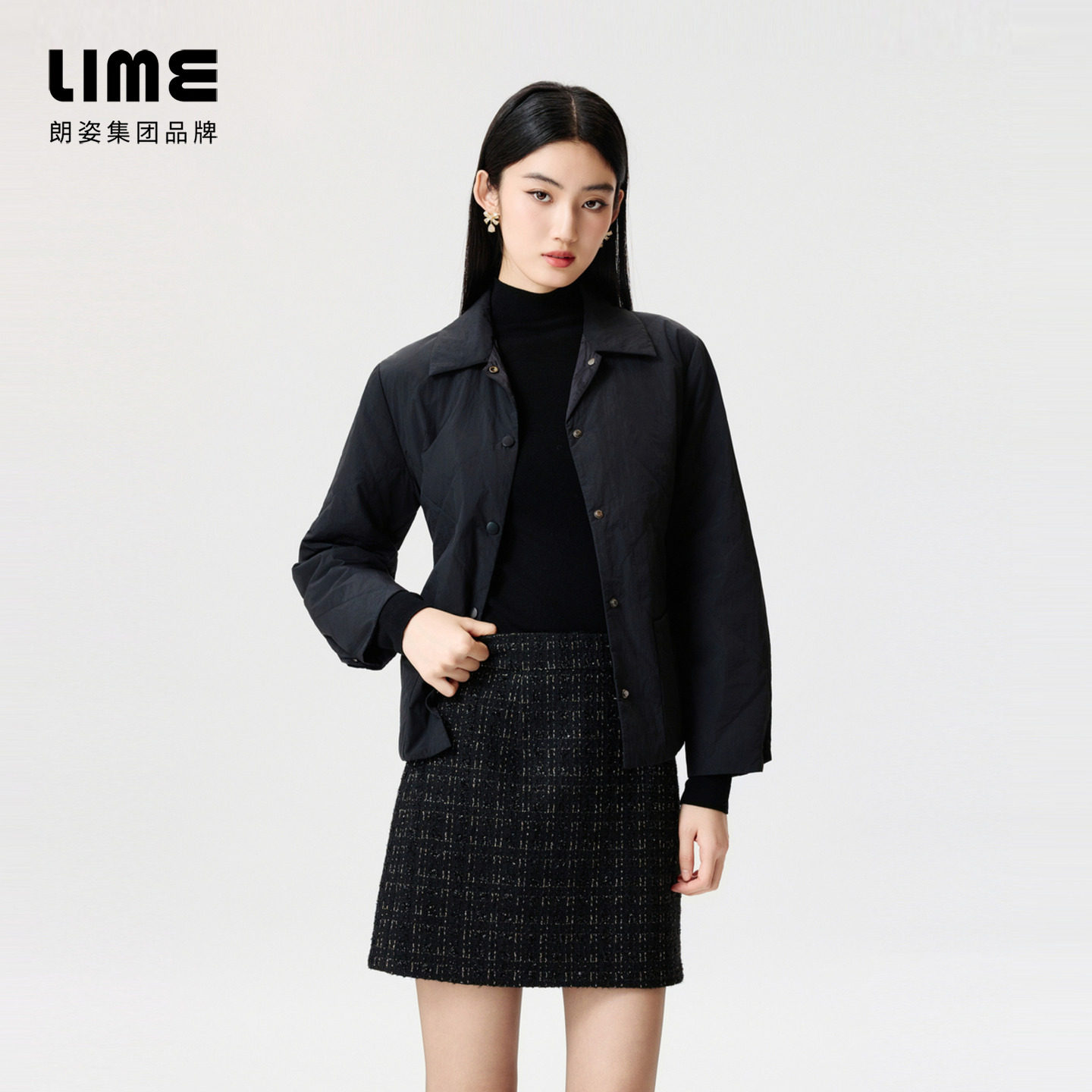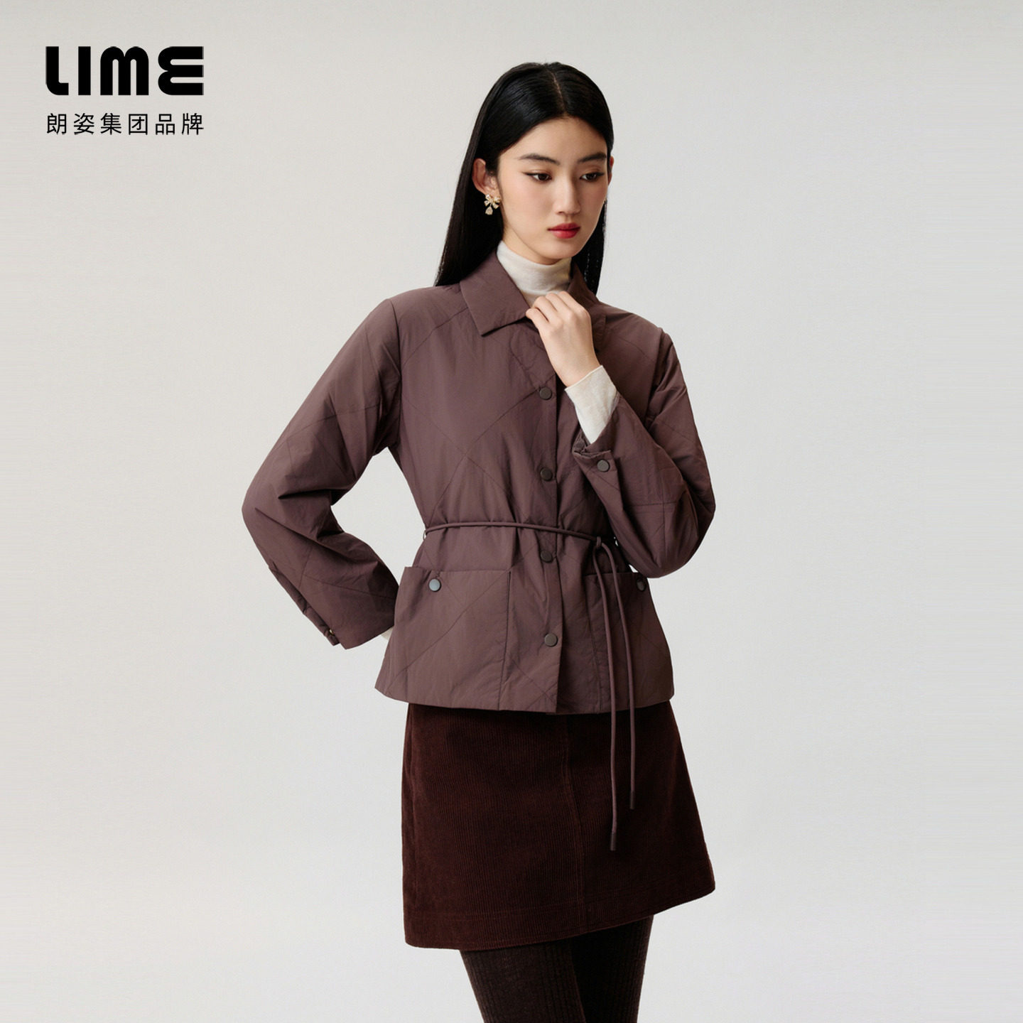 【明星同款】朗姿/LIME莱茵商场同款轻薄收腰夹克棉服外套新款