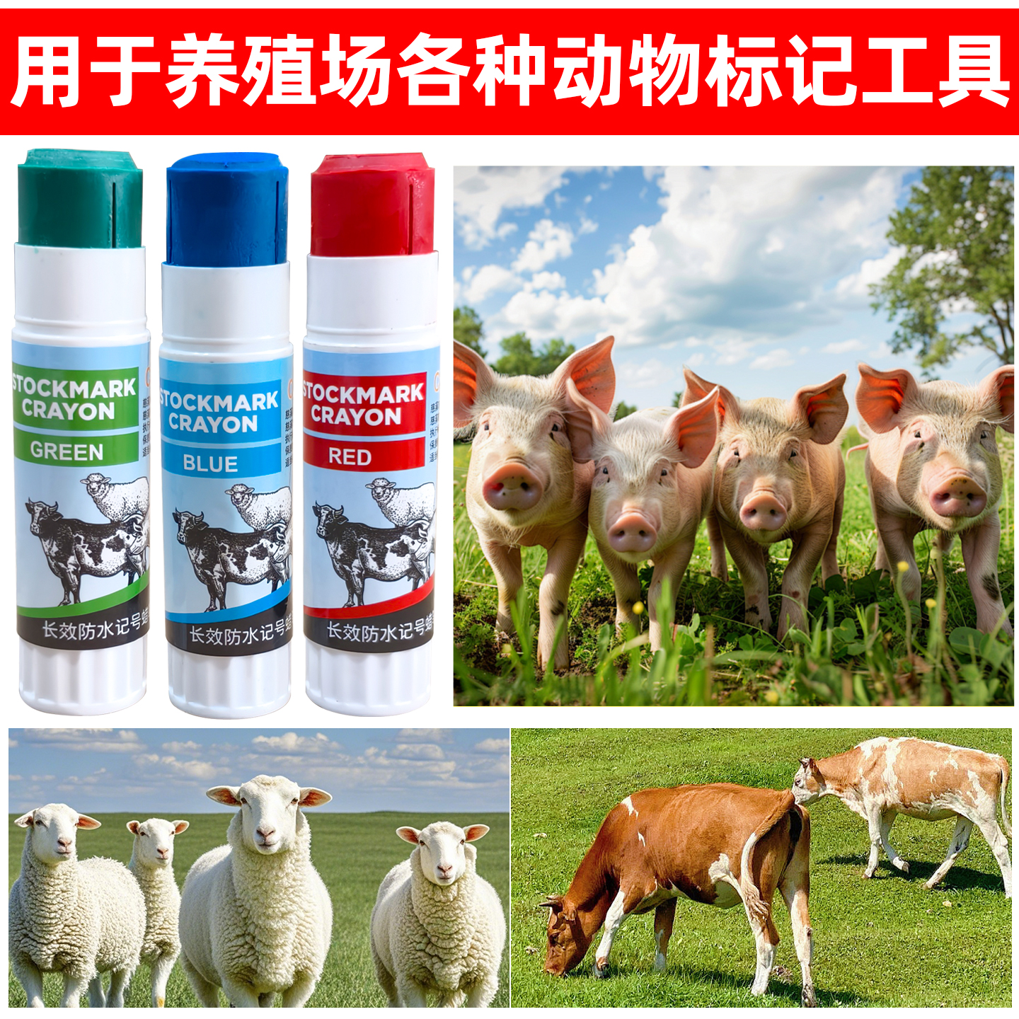 大农夫记号笔兽用蜡笔防水猪用画笔三色养殖场牛羊标记笔水彩画笔
