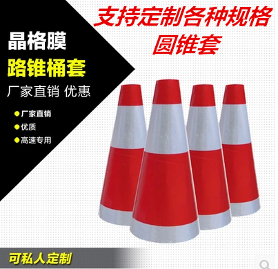 定制反光路锥套警示柱交通路障雪糕筒贴纸塑料方锥圆筒隔离墩光膜