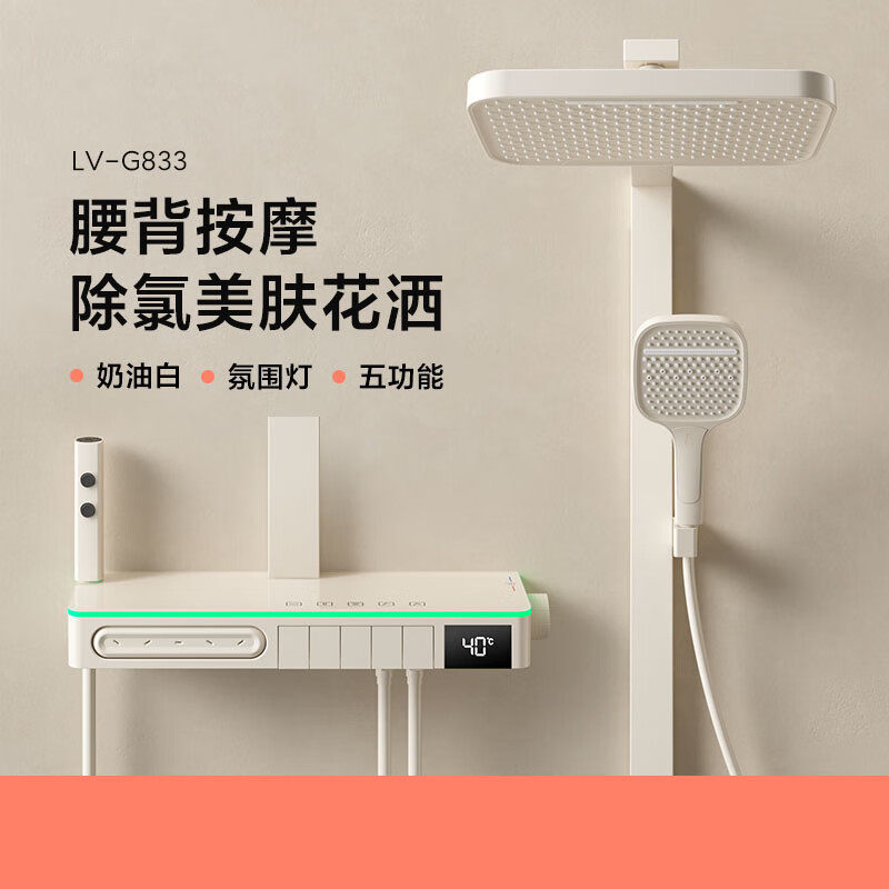 汉斯hansiminghe奶油白色恒温智能数显淋浴腰喷全铜花洒套装增压