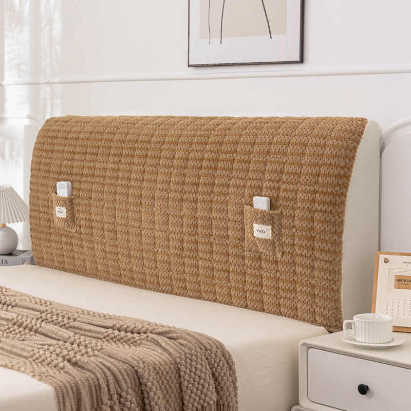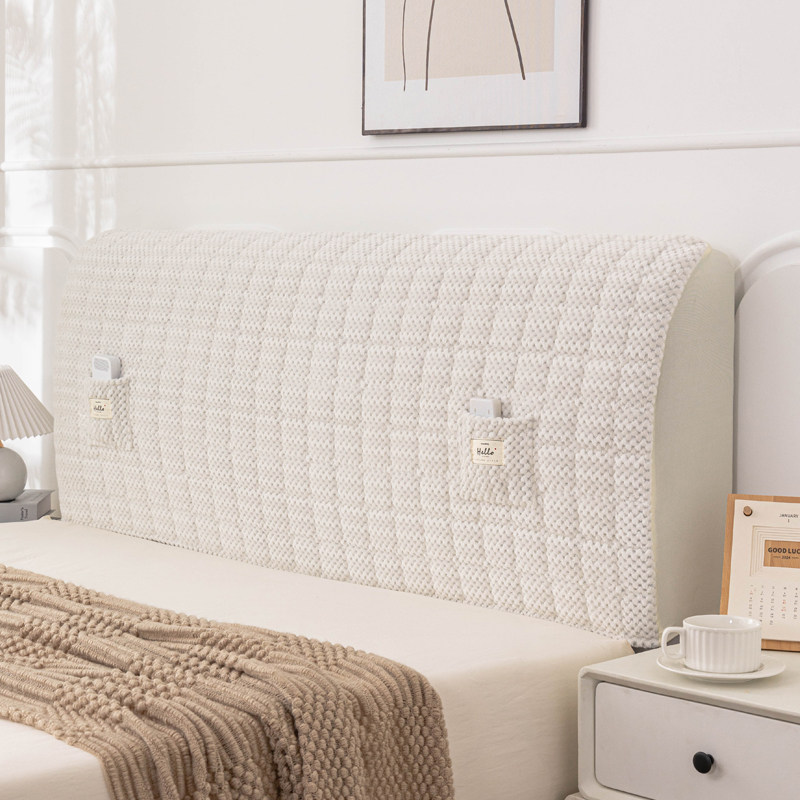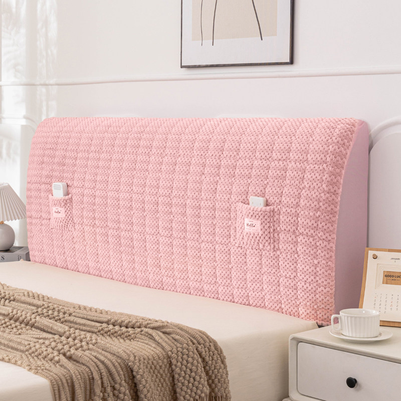 加厚夹棉床头靠背现代简约床头罩纯色绗缝布艺床头套全包新款绒料