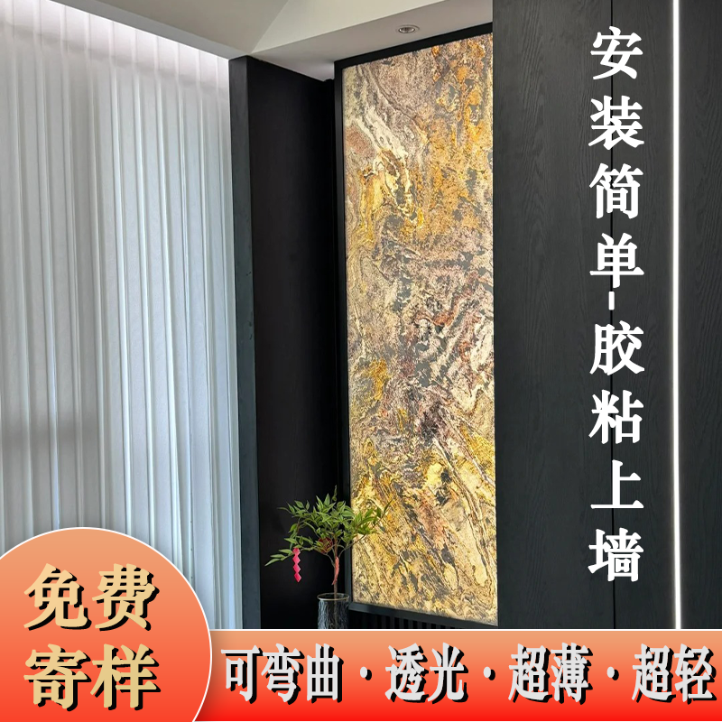 透光超薄石材可弯酒店别墅网红背景墙板发光板易安装创意天然薄石