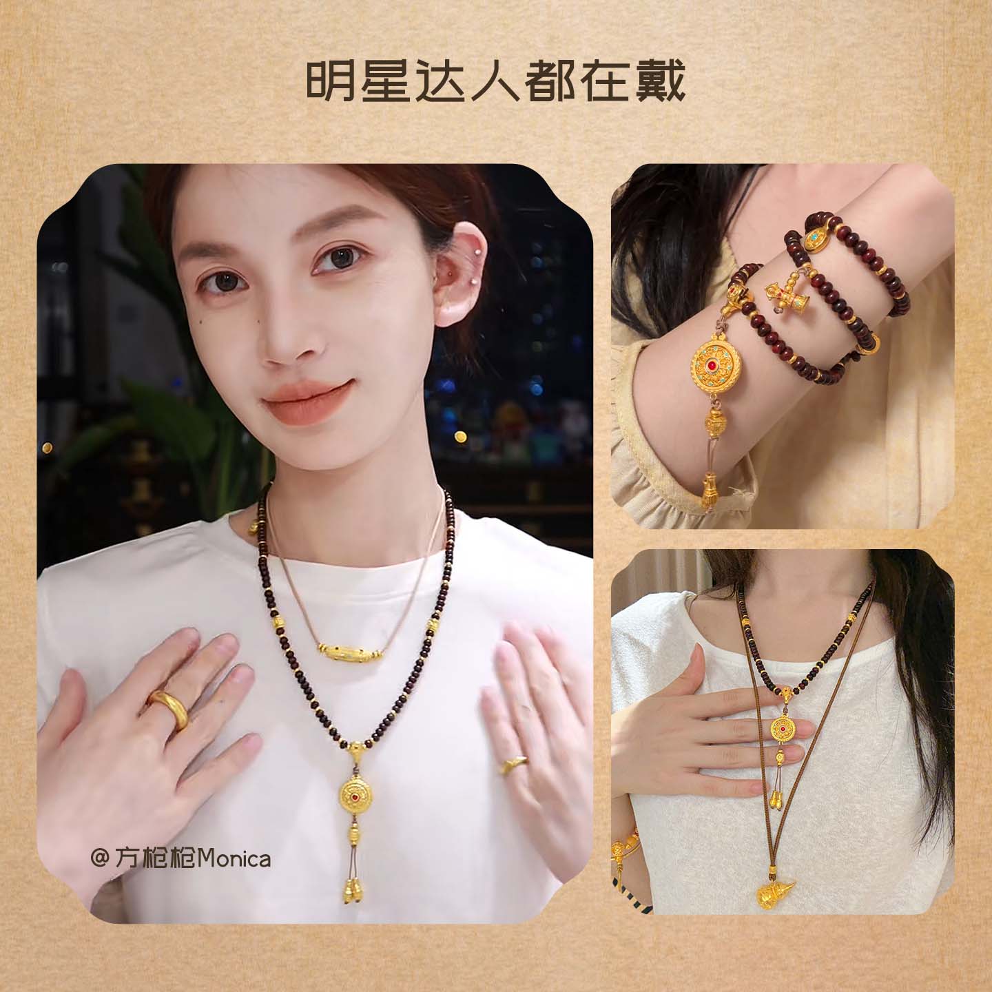周大生腕美吉祥布达拉系列黄金八宝罗盘小叶紫檀手串足金珐琅手链