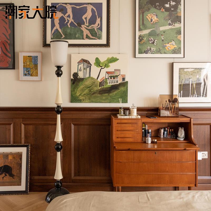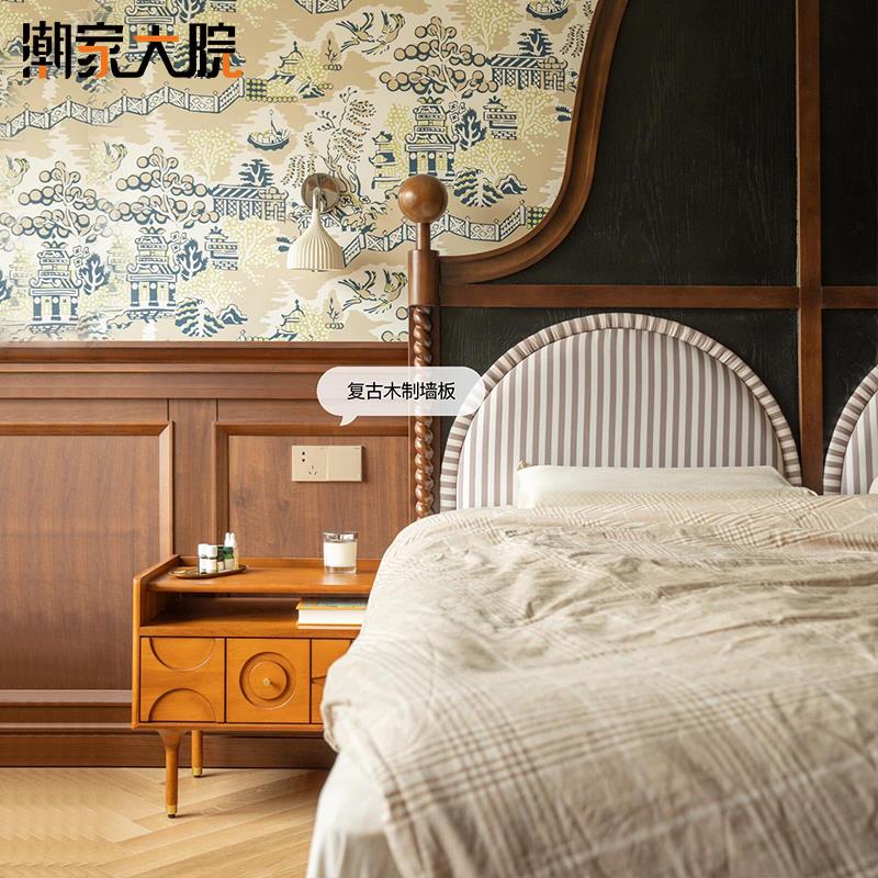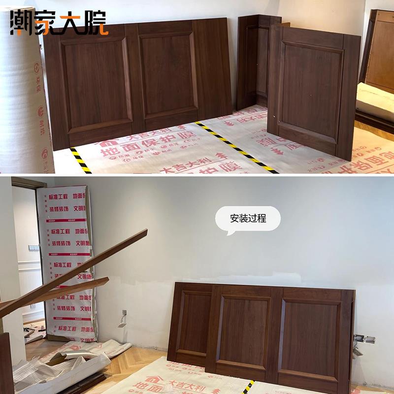 中古风实木护墙板黑胡桃覆古烤漆墙裙木饰面电视背景墙全屋定制