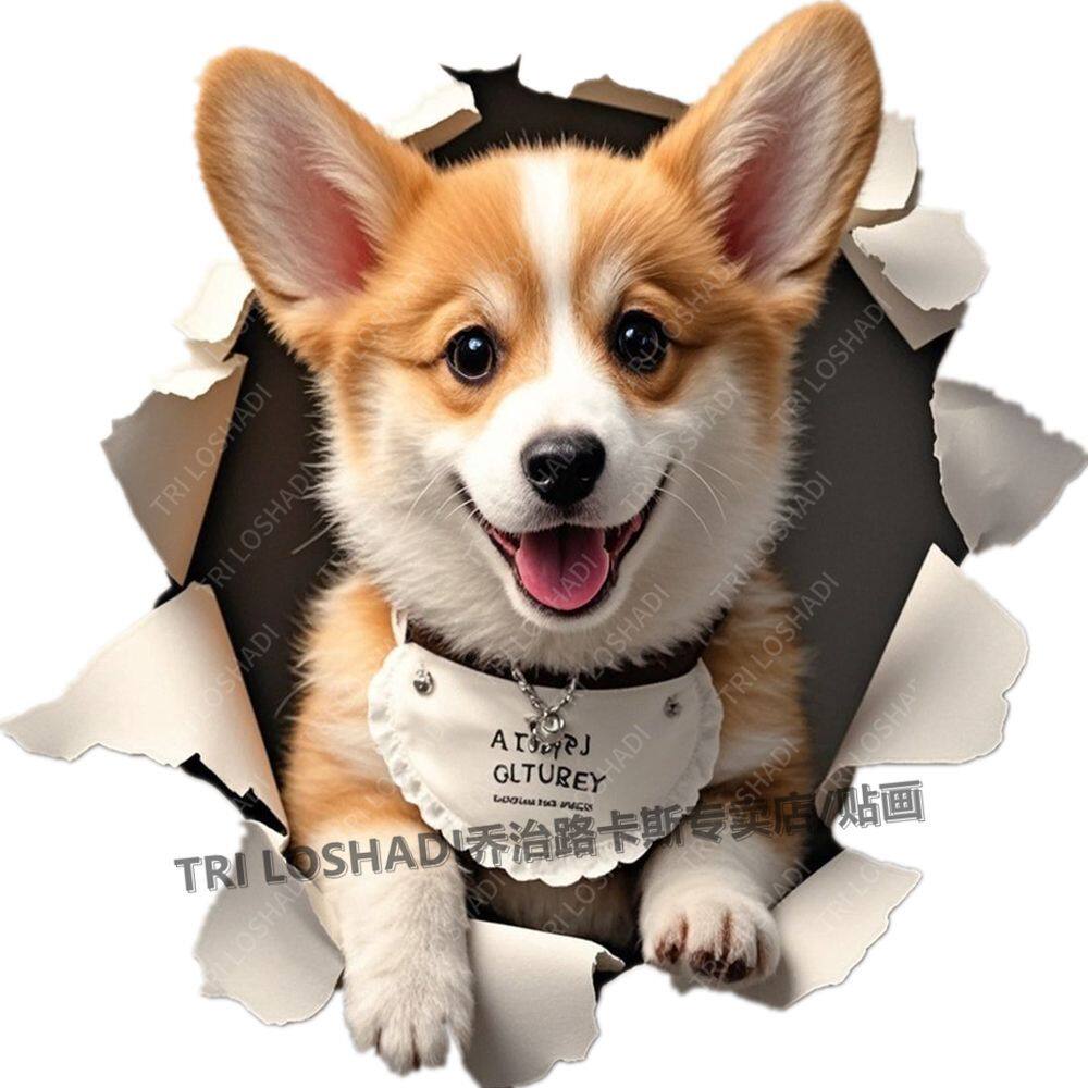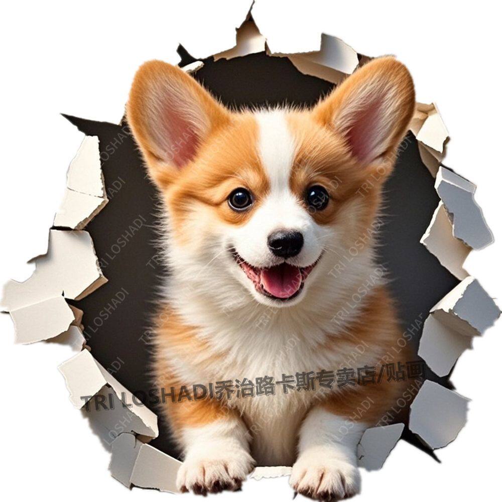 网红爆款可爱柯基贴纸防水自粘墙上贴画狗狗贴车装饰遮丑补洞门贴