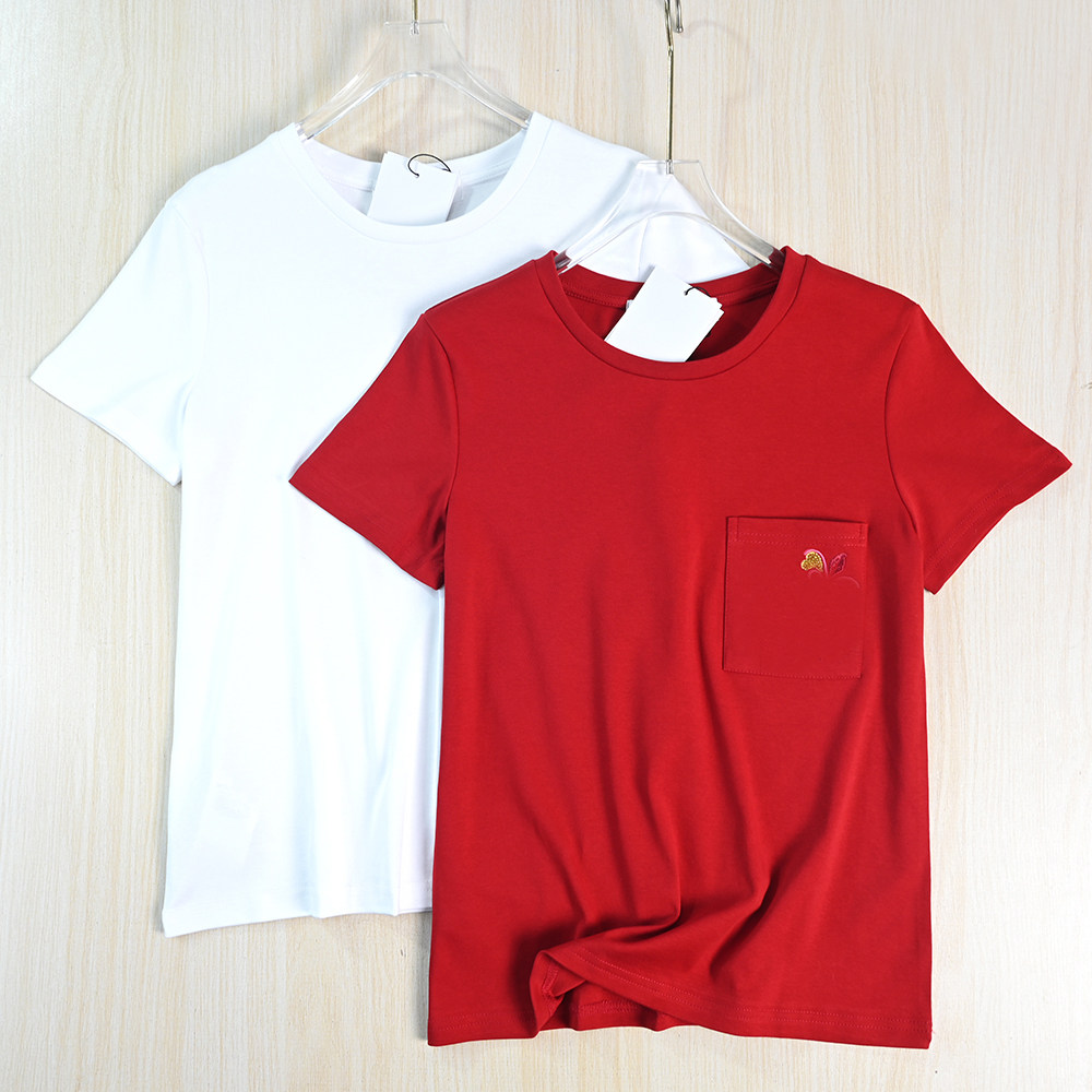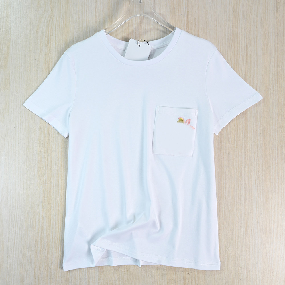 思琪女装262/2 柔软舒适棉质贴袋刺绣圆领休闲短袖T恤
