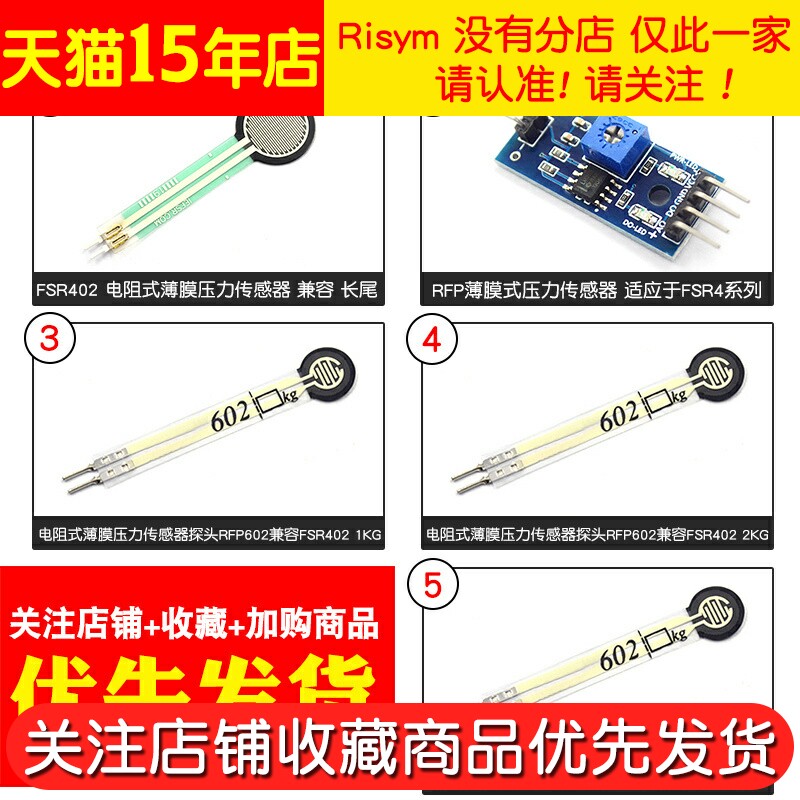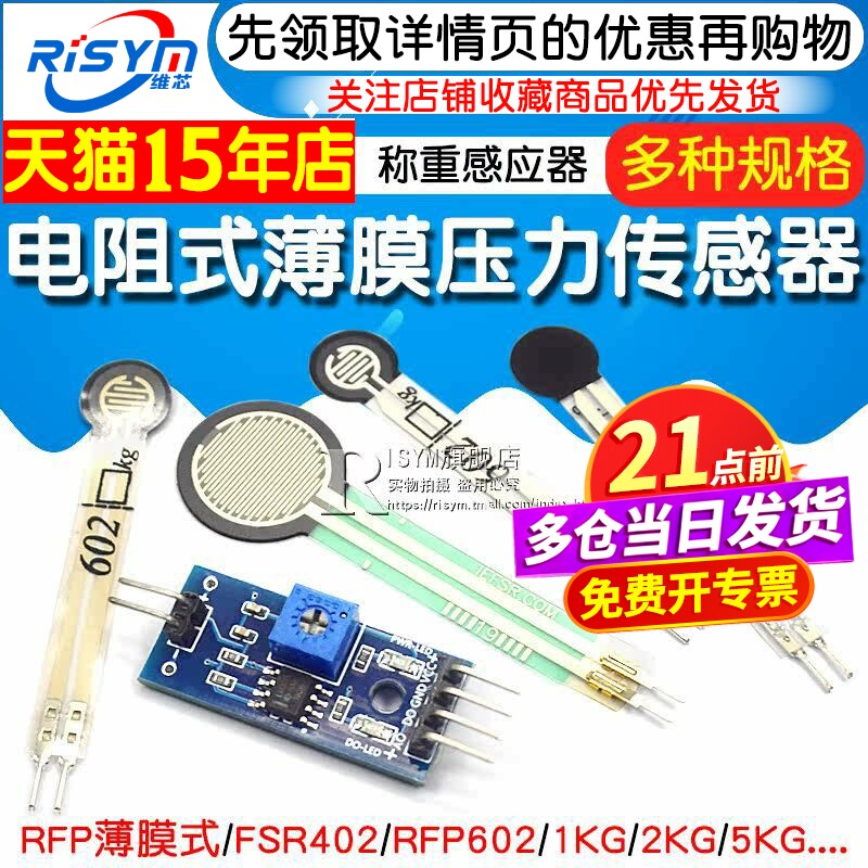 FSR402 电阻式薄膜压力传感器力敏电阻 薄膜RFP602称重感应器模块