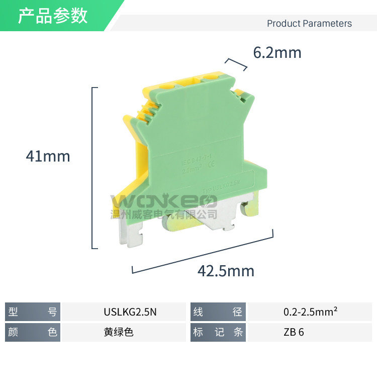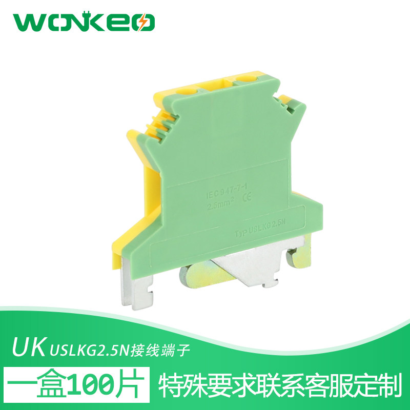 USLKG2.5接线端子排导轨式UK双色电压2.5MM平方黄绿接地端子UK2.5