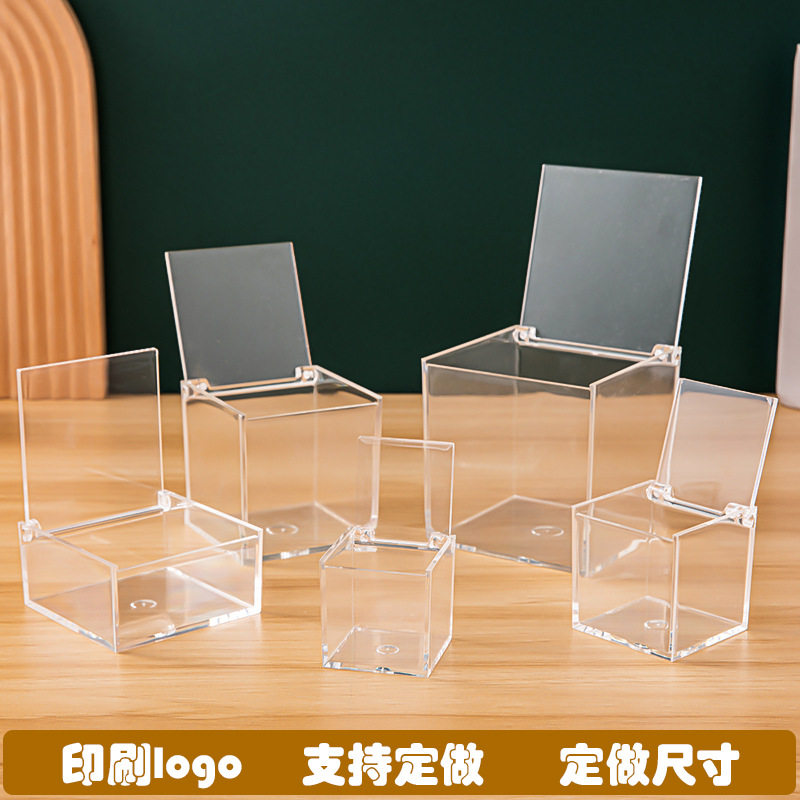 翻盖透明塑料盒正方形亚克力手办首饰化妆品收纳展示斗鱼方盒子
