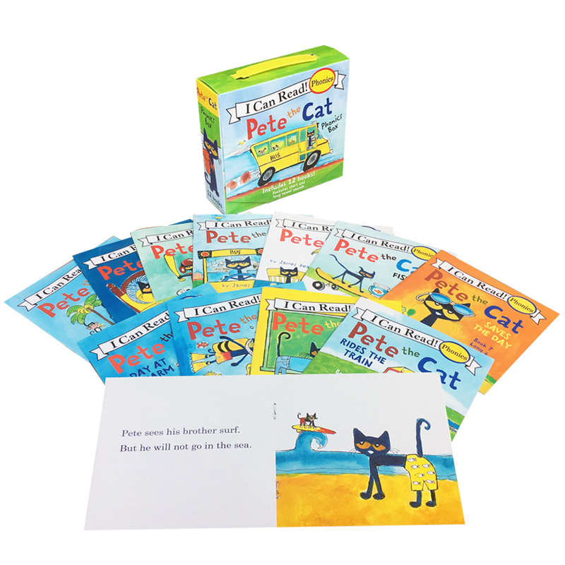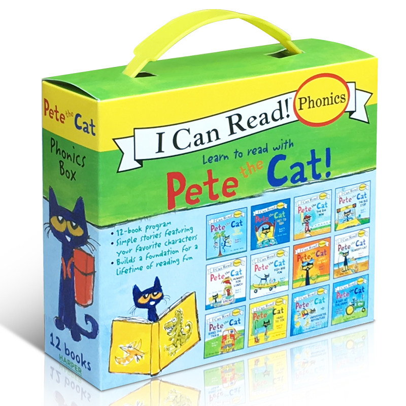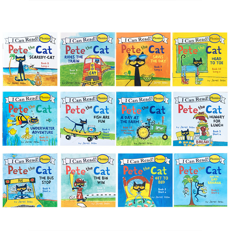 英文绘本Pete the Cat Phonics 12册盒装皮特猫自然拼读icanread第一阶段英语入门启蒙i love my white shoes同系列PetetheCat