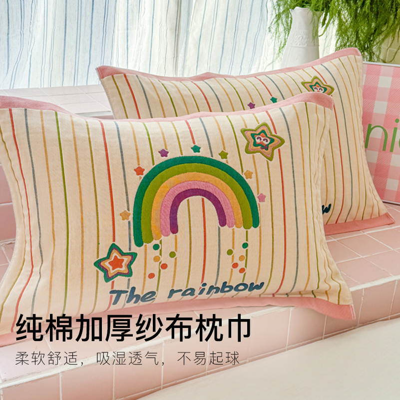 洁丽雅纯棉枕巾一对装枕头巾100全棉纱布2025新款高端品牌防头油a
