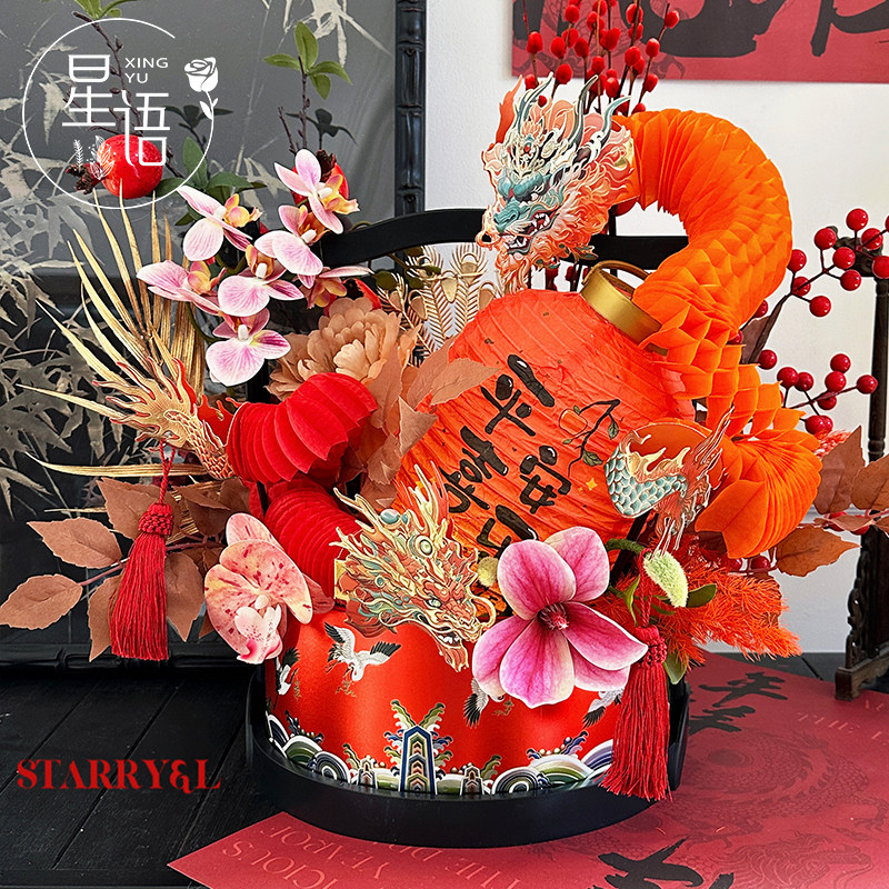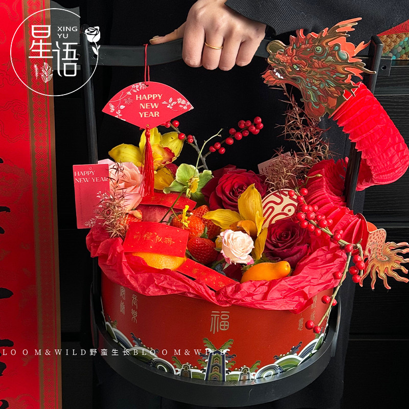 新年年宵节法式礼盒喜提圆盒水果礼物礼品盒插花盒diy花艺包装盒