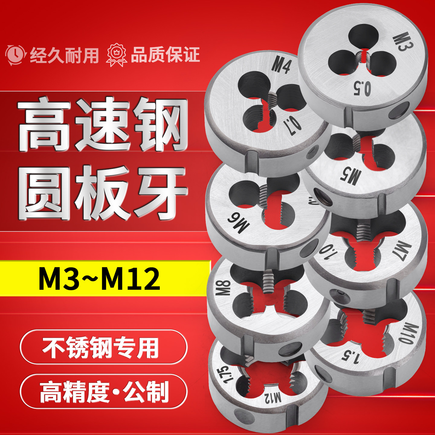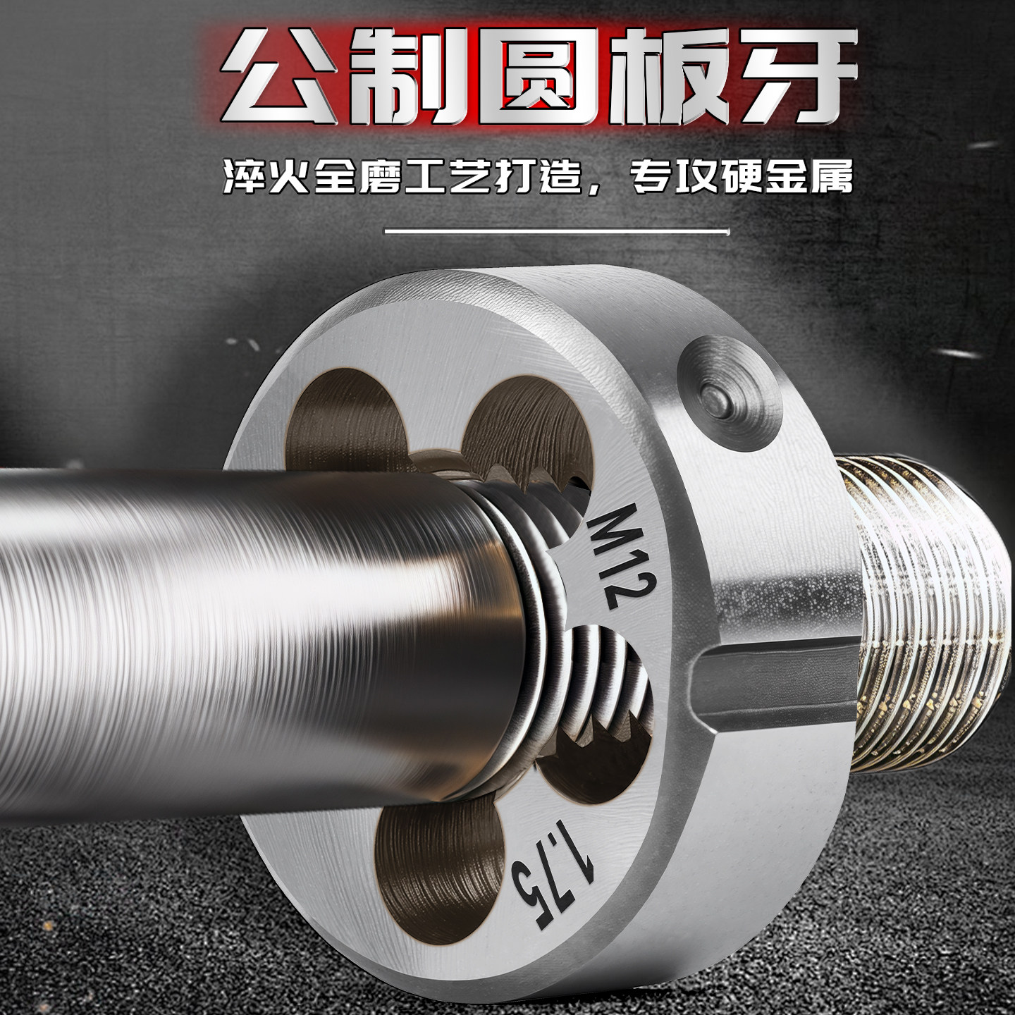 圆板牙套装五金工具丝攻攻丝手用绞手公制攻牙组合板牙套装组合