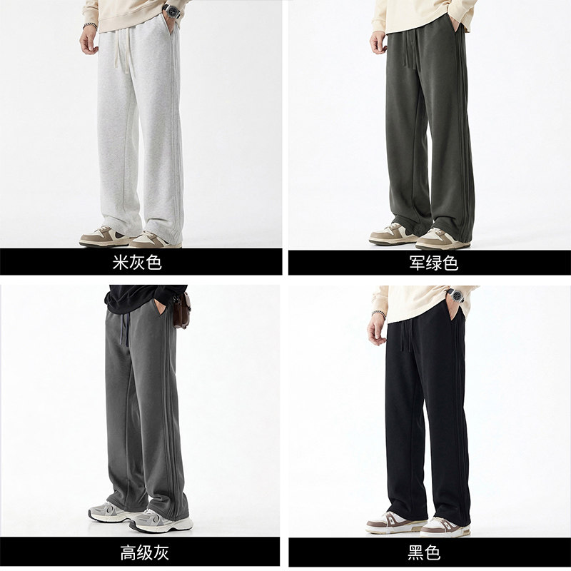 雅鹿2026春秋季新款宽松格雷系卫裤男潮流垂感直筒裤运动休闲长裤