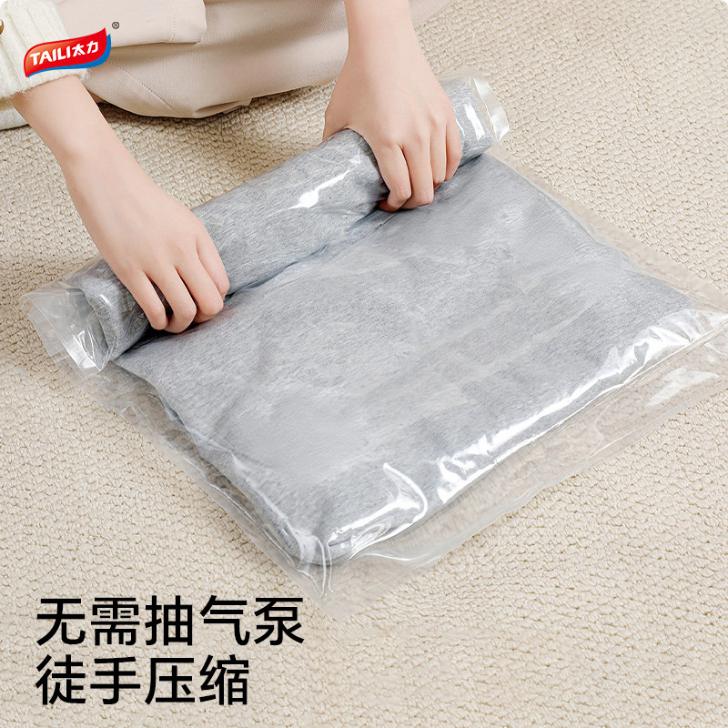 太力免抽气手卷压缩袋旅行真空收纳羽绒服衣服行李箱专用便携出差