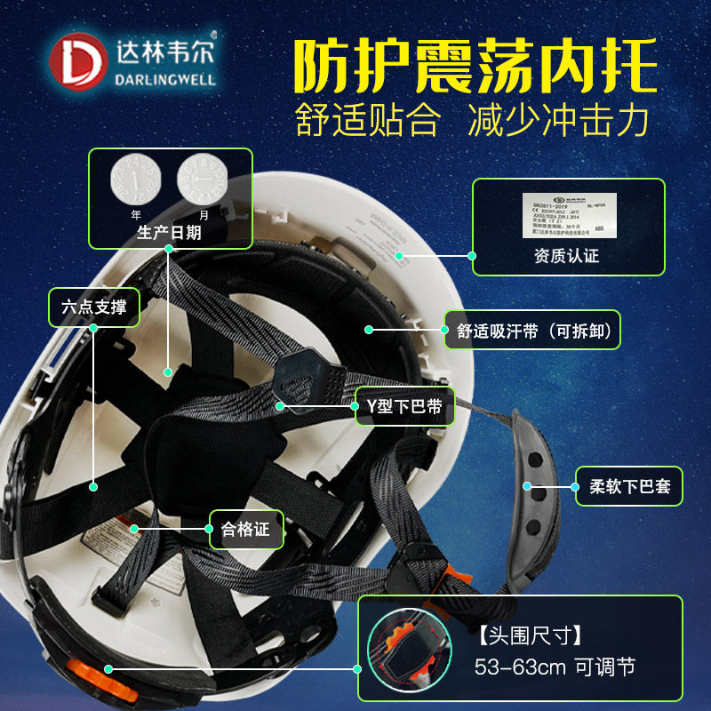 达林韦尔工地安全帽防砸照明Led头灯多功能头部防护建筑工程救援