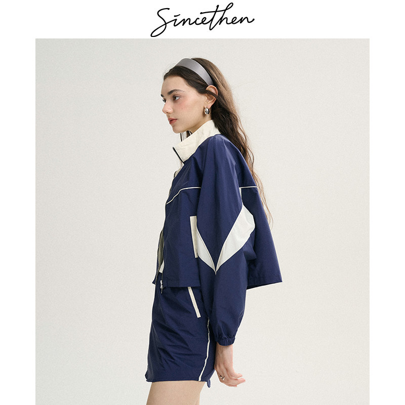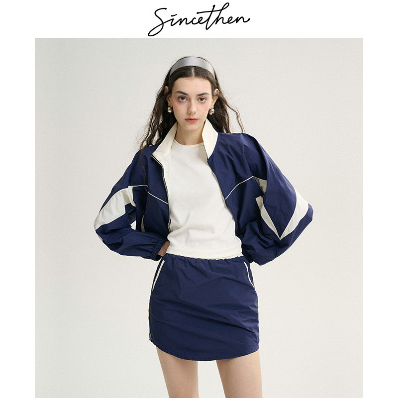 sincethen运动套装休闲宽松立领外套短款半身裙两件套裙高级感女