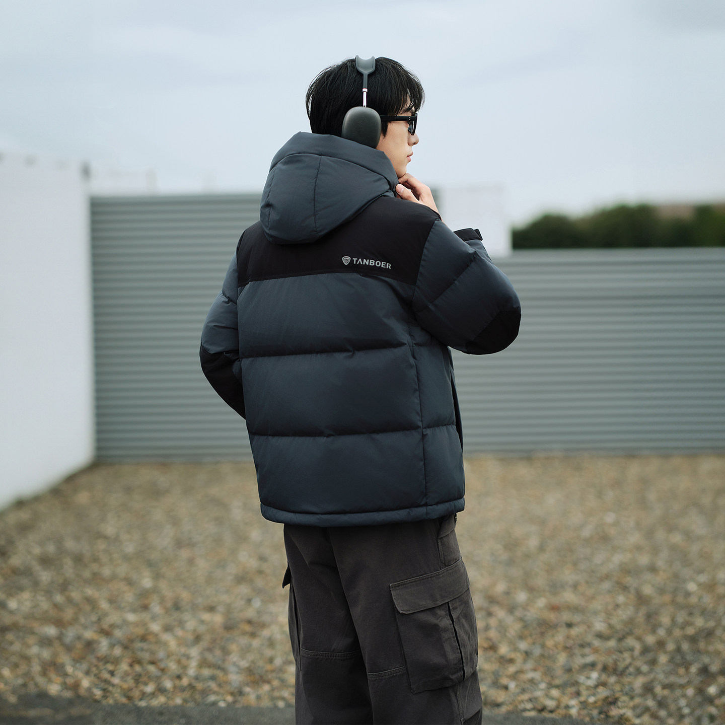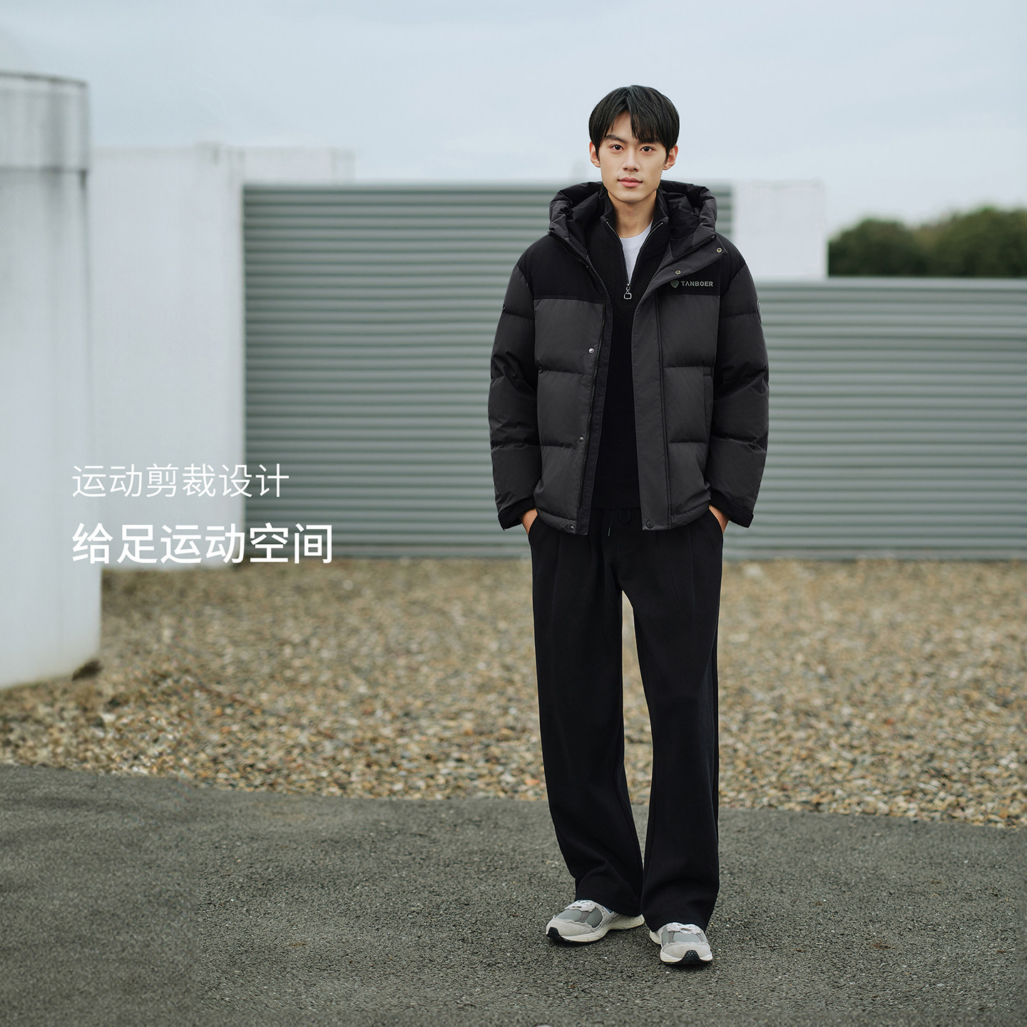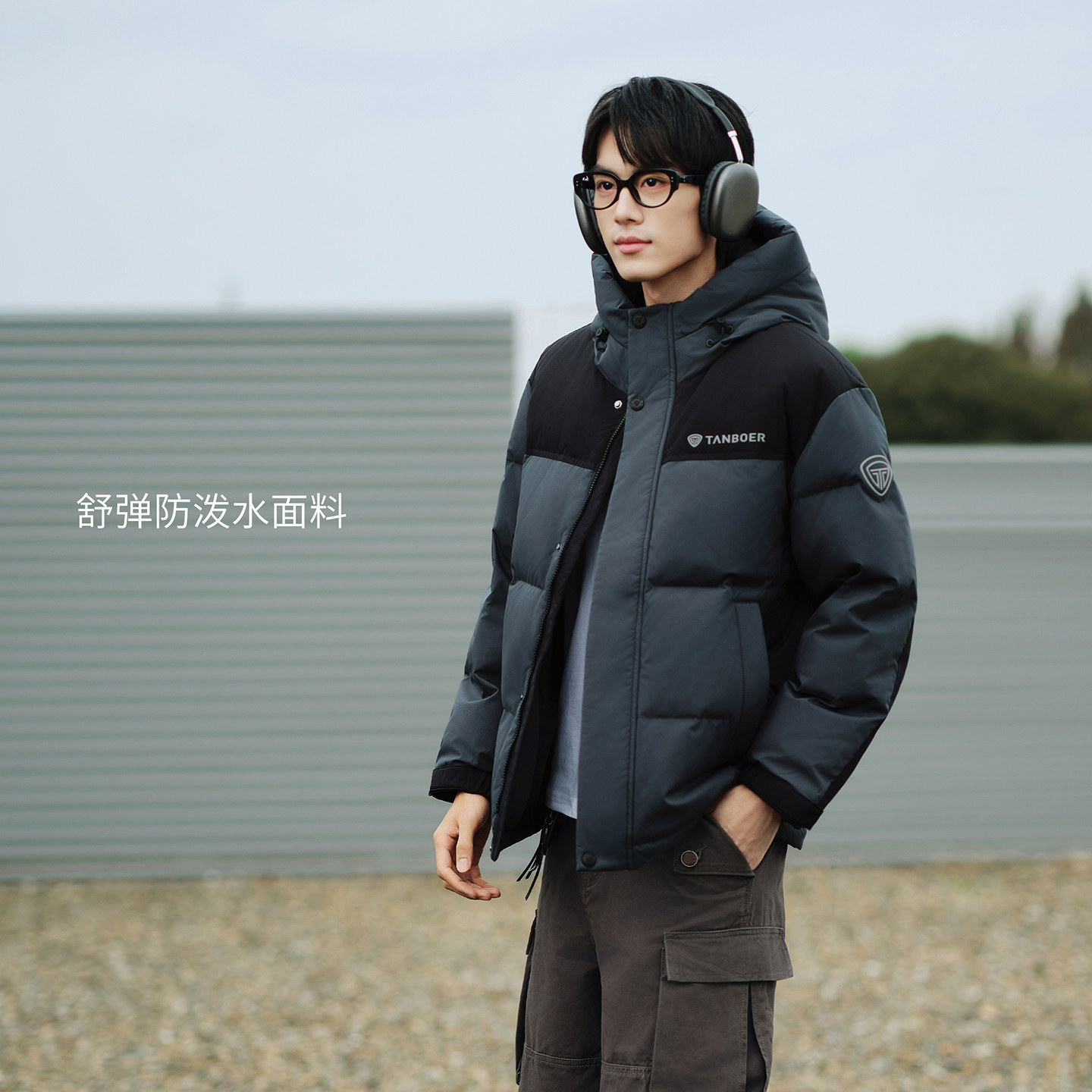 坦博尔25冬季新款男士羽绒服短款加厚保暖连帽款休闲男装运动外套