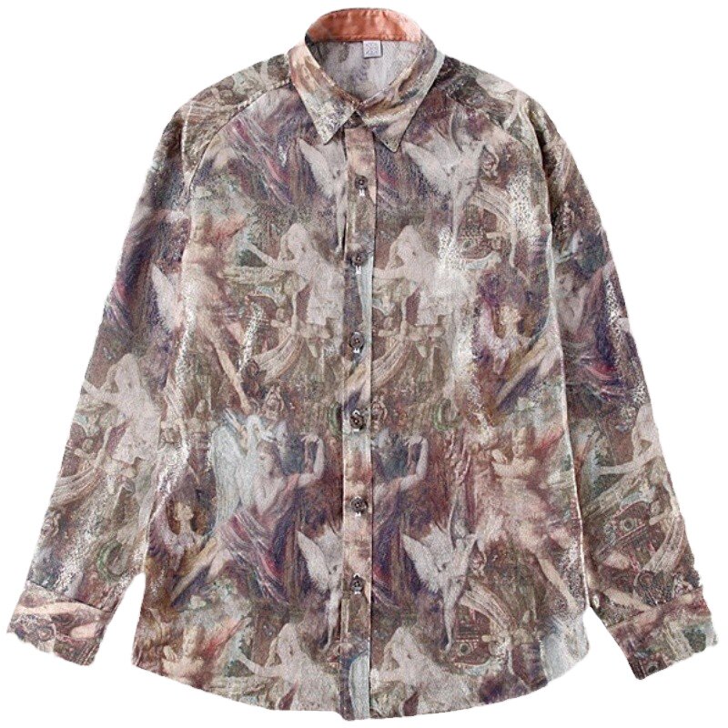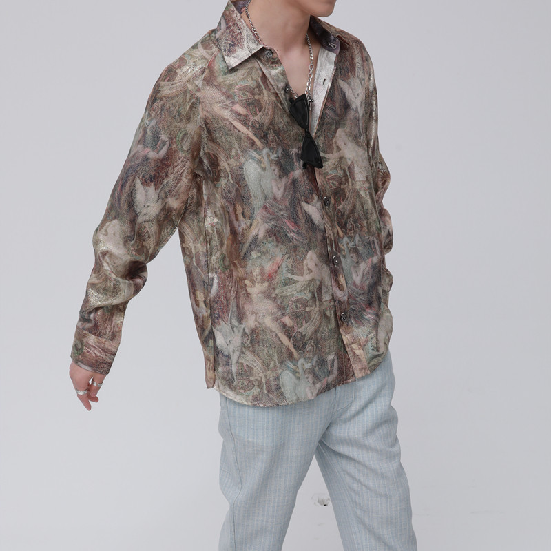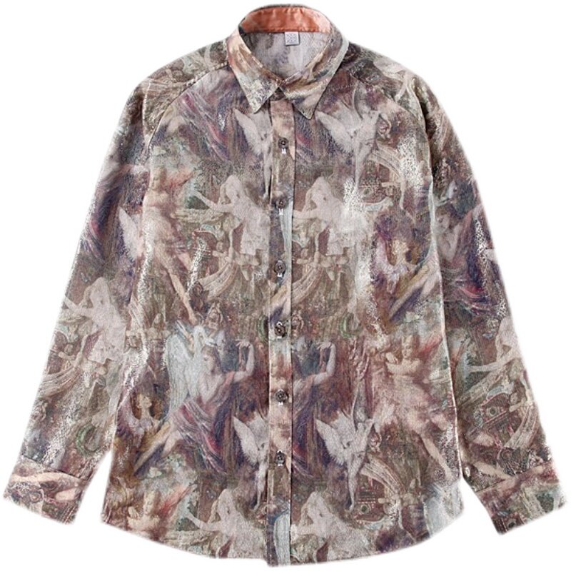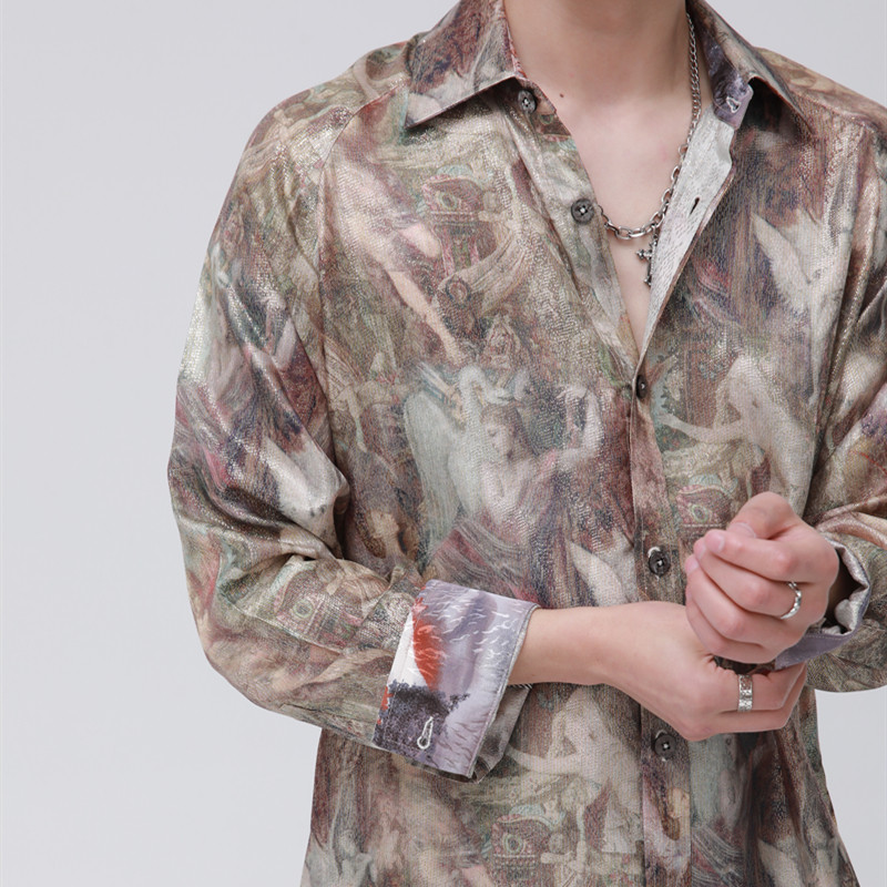 时着 金属桑蚕丝超闪宫廷油画衬衫男限量定制美式贵公子长袖衬衣