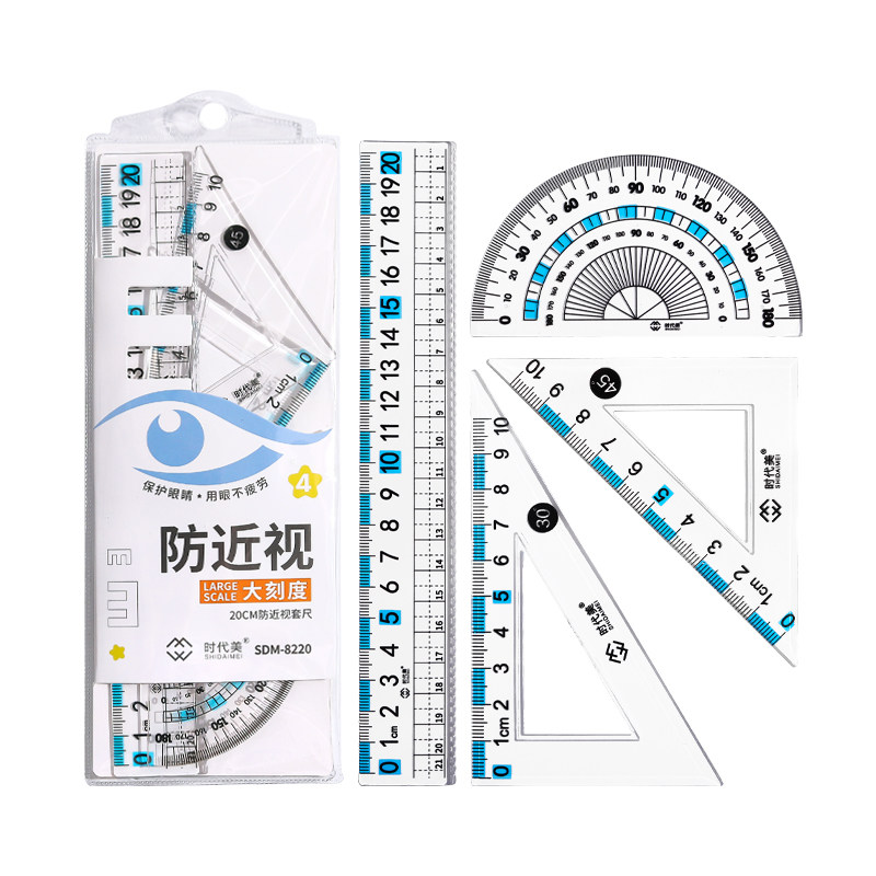 防近视尺子套装小学生专用一年级套尺三角尺波浪直尺量角器护目尺