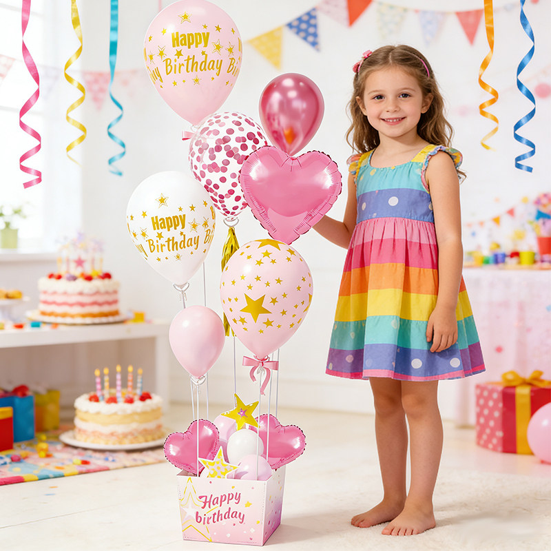 飘空气球生日快乐场景拍照桌飘生日快乐盒子气球周岁场景布置气球