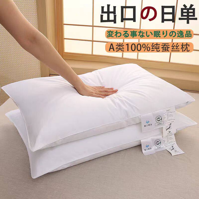 出口日本100%桑蚕丝枕芯枕头一对装低中高枕五星级酒店全棉成人枕