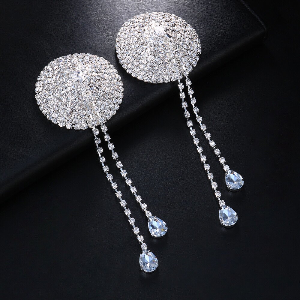 欧美新款时尚圆形水滴流苏乳头贴 性感水钻女性身体首饰