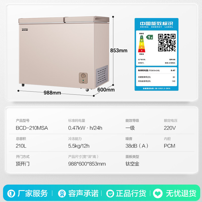 容声冰柜210升L双门双温大容量卧式冷柜冷冻冷藏一级以旧换新补贴