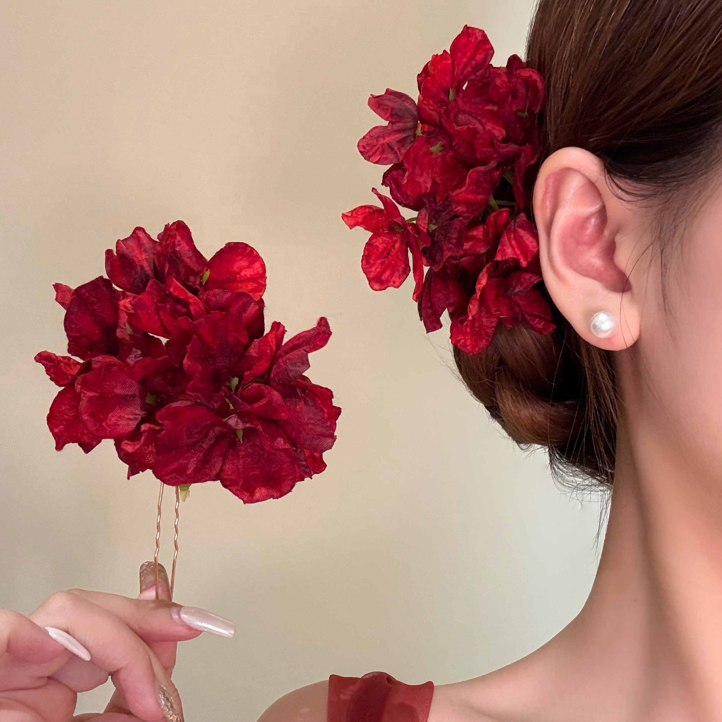 娇媚少女 新中式紫色花朵发簪发钗女古风汉服旗袍侧边夹头花发饰
