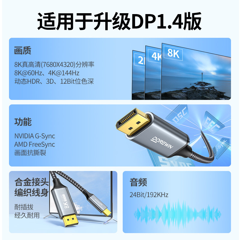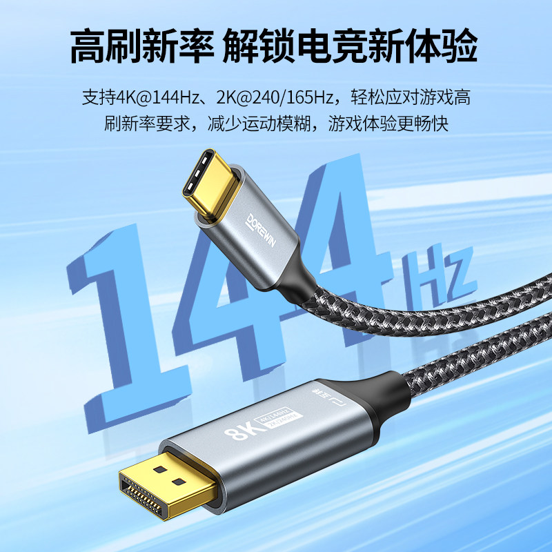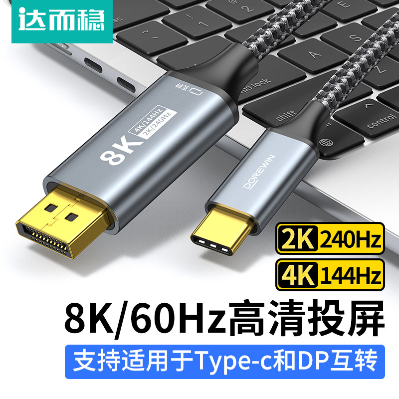 达而稳 Type-c转DP线转换接头4K高清笔记本连接电视显示器投屏1米