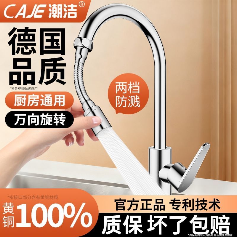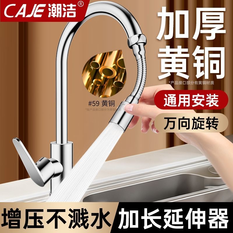 潮洁厨房万向水龙头防溅器防溅水接头出水嘴花洒可旋转龙头延伸器