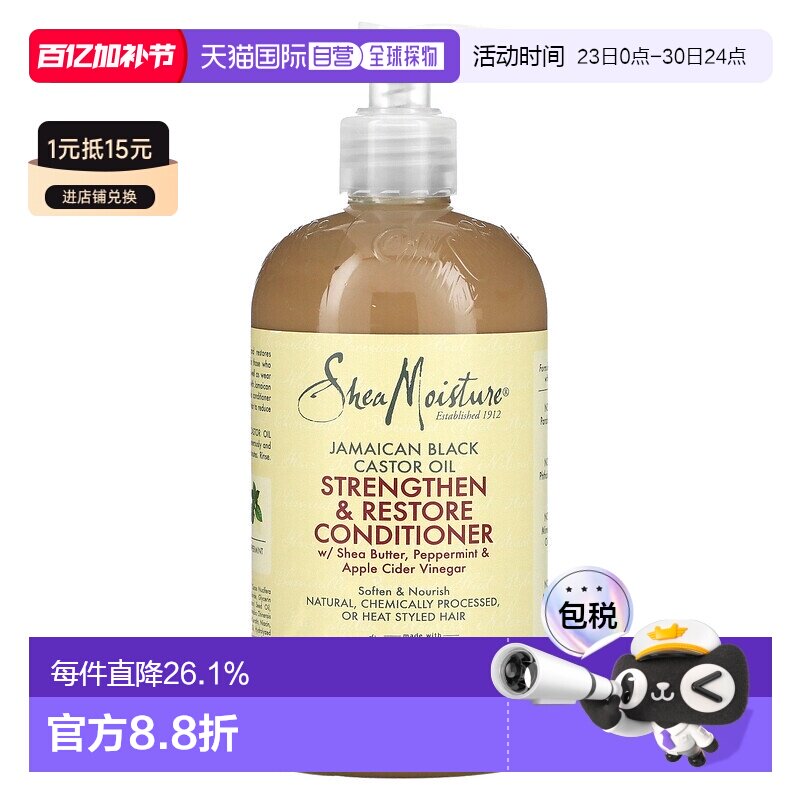 香港直邮Shea Moisture护发素牙买加黑蓖麻油烫染发质384ml正品