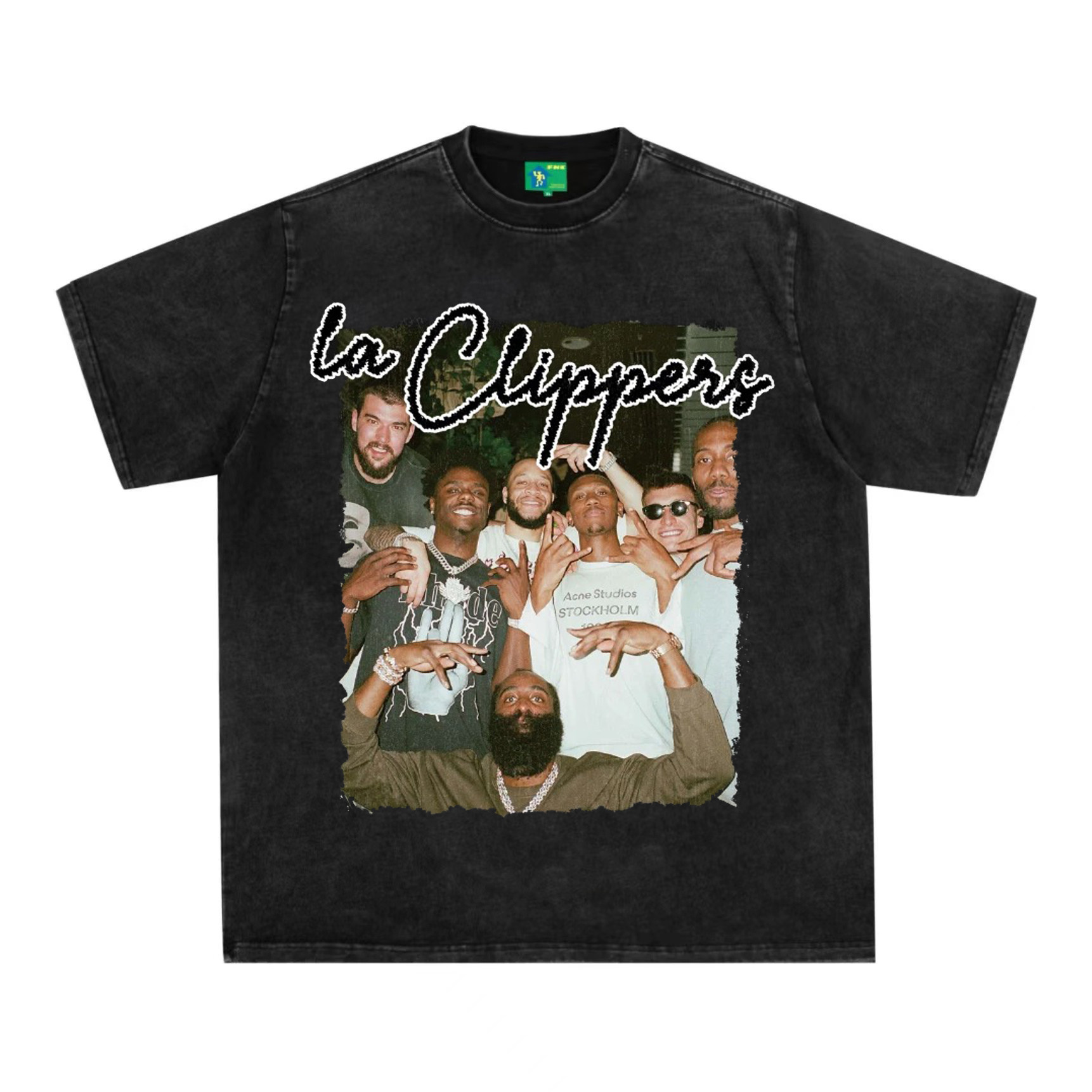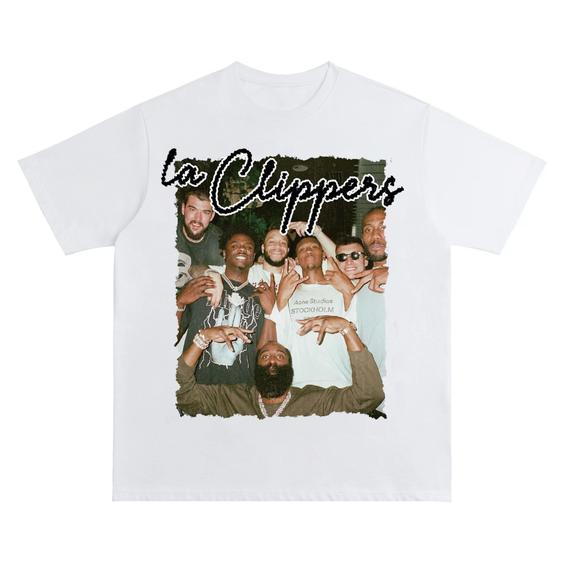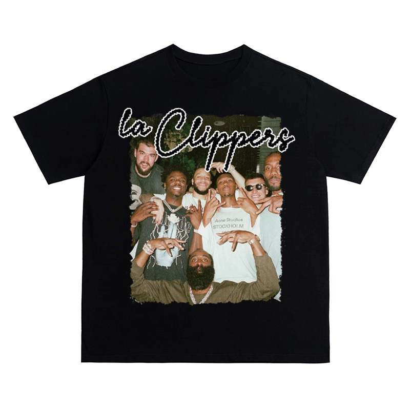 快船队合照美式复古数码直喷印花圆领短袖水洗做旧高街潮牌T恤男