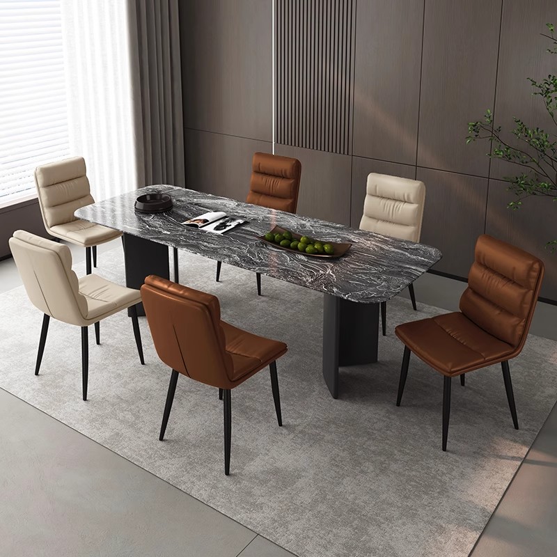 现代简约餐椅家用北欧轻奢靠背椅意式餐厅2025新款皮椅子真皮凳子