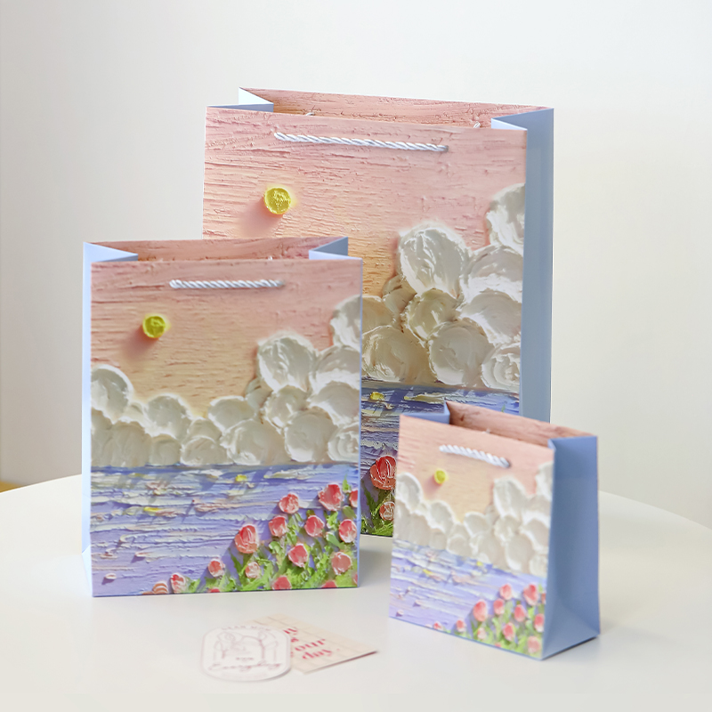 创意油画手提袋生日礼物包装袋节日礼袋送礼物手提袋纸袋子