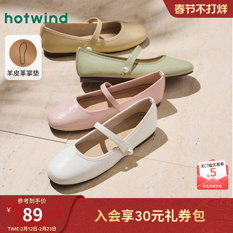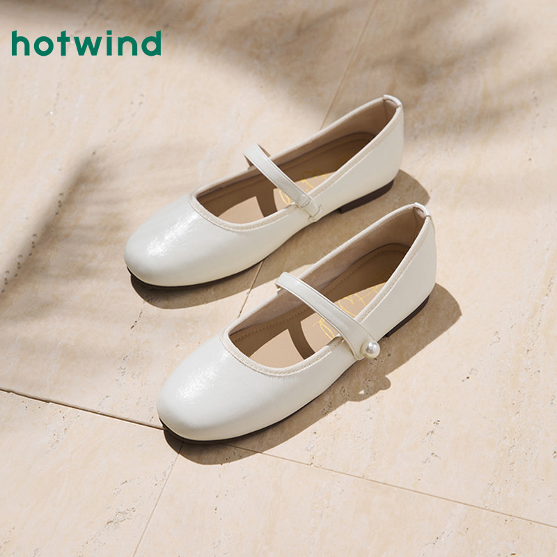 热风平底单鞋女款2026年春秋新款一字带浅口女鞋配裙子休闲鞋子女