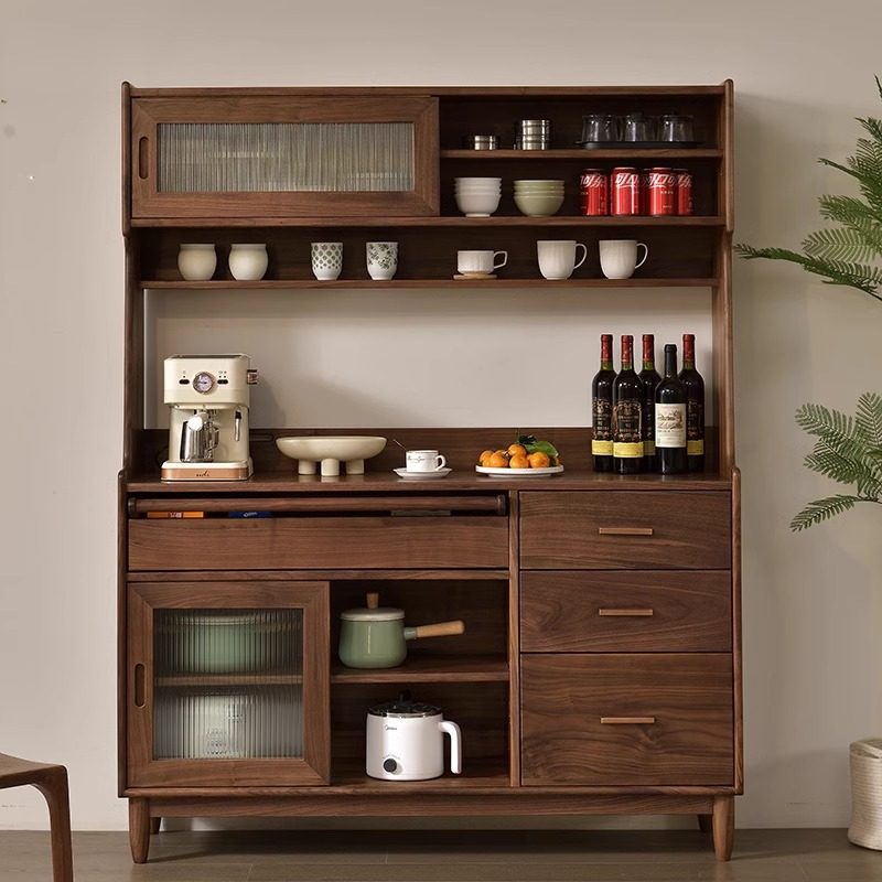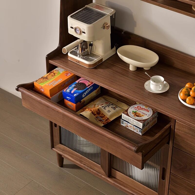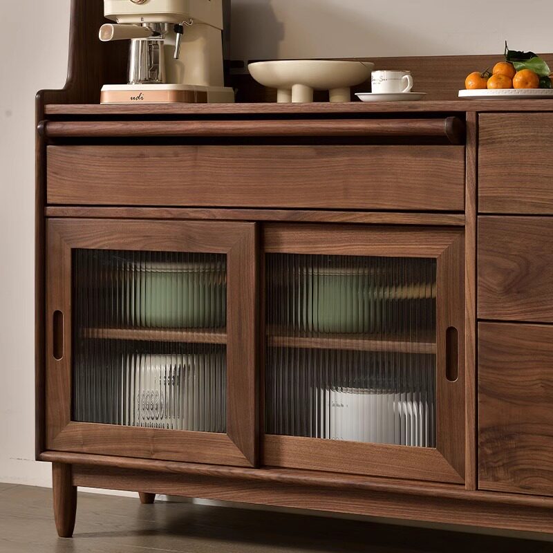 西提北美黑胡桃木餐边柜一体靠墙全实木置物收纳柜原木榫卯整装