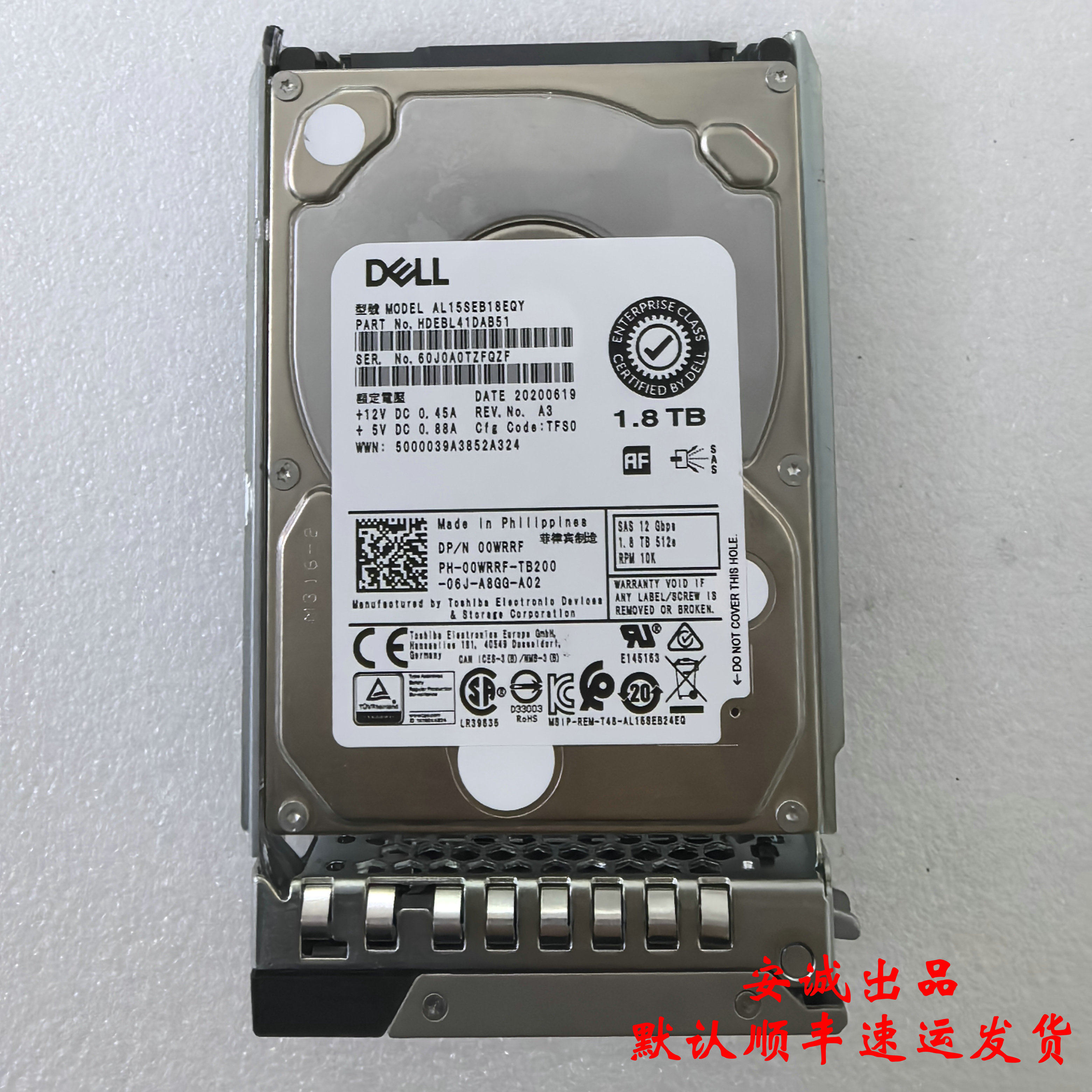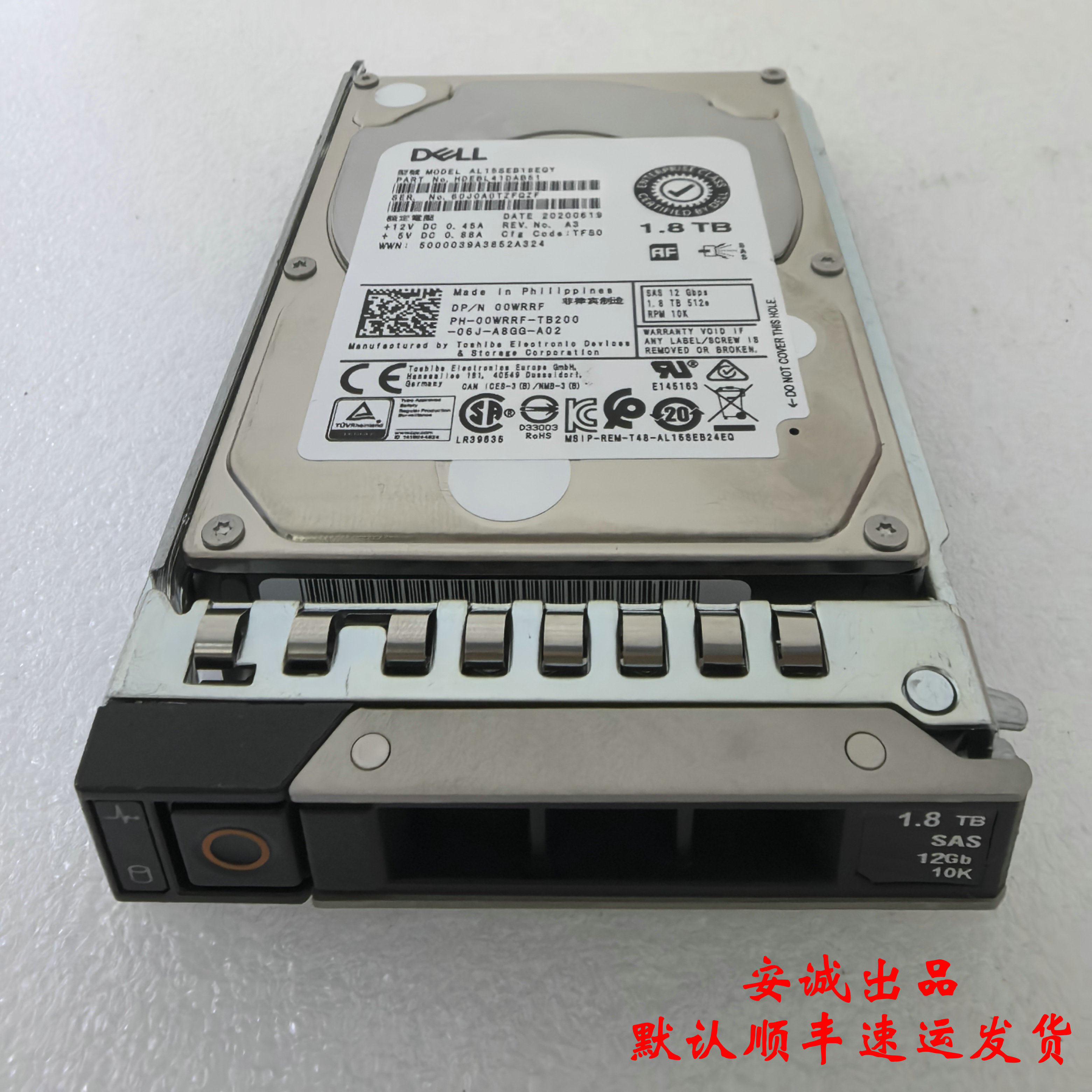 Dell 00WRRF 1.8T 10K SAS 12G 2.5寸 AL15SEB18EQY 服务器硬盘