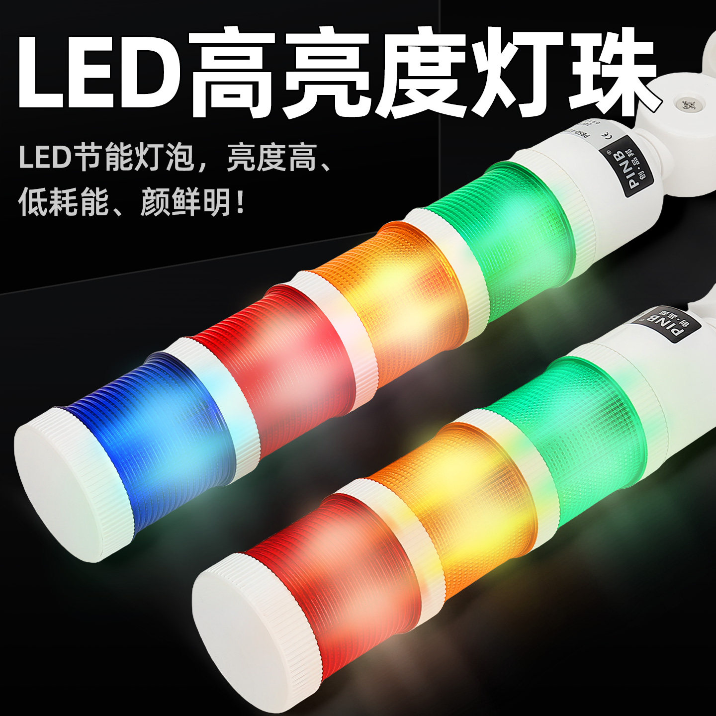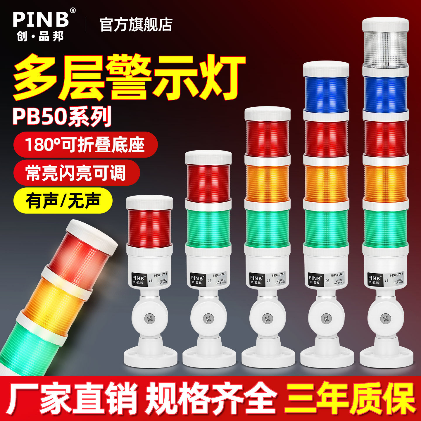 品邦多层警示灯机床设备声光报警器220V三色指示灯24常亮闪亮PB50