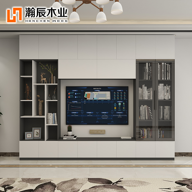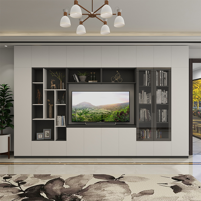 全屋定制电视柜整体客厅意式极简轻奢背景墙电视柜一体电视机壁柜