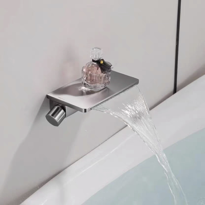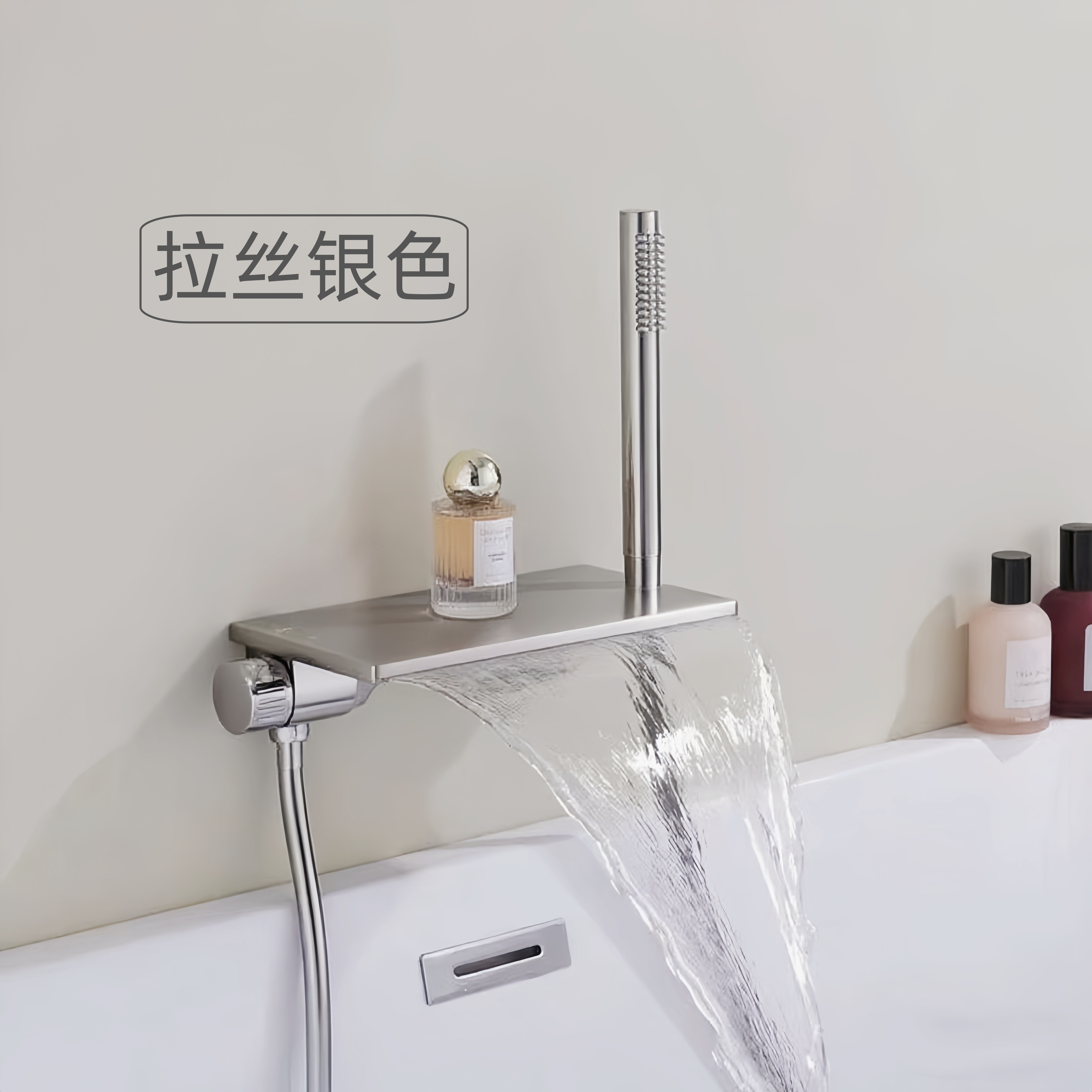 霖代卫浴明装浴缸水龙头冷热挂墙式浴盆水池瀑布水龙头贴墙无缝