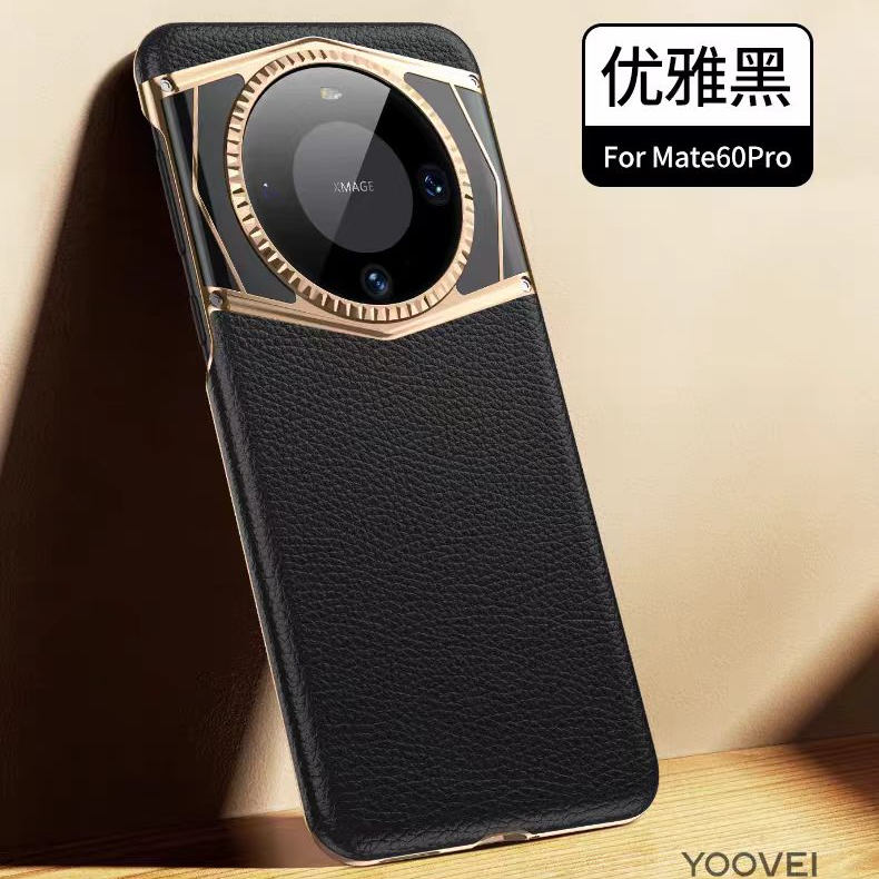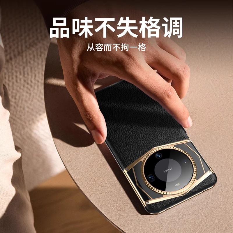 适用华为mate70pro真皮表盘镜头手机壳mate60RS头层牛皮保护壳mate70金属镜头保护套mate50pro超薄商务男外壳