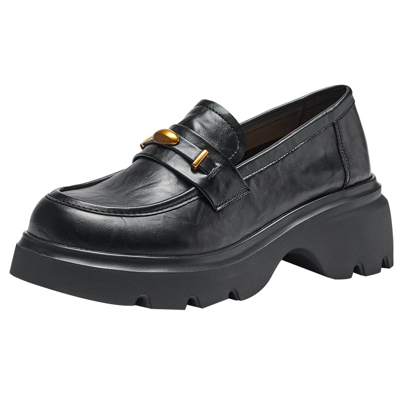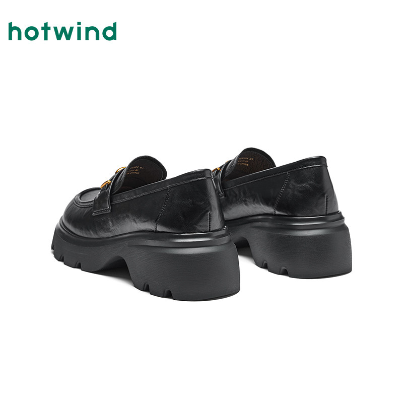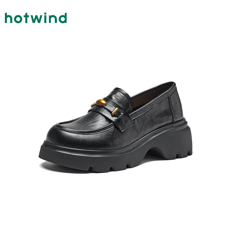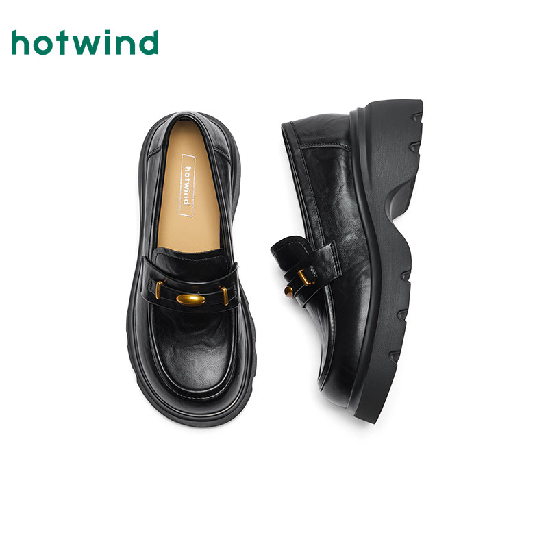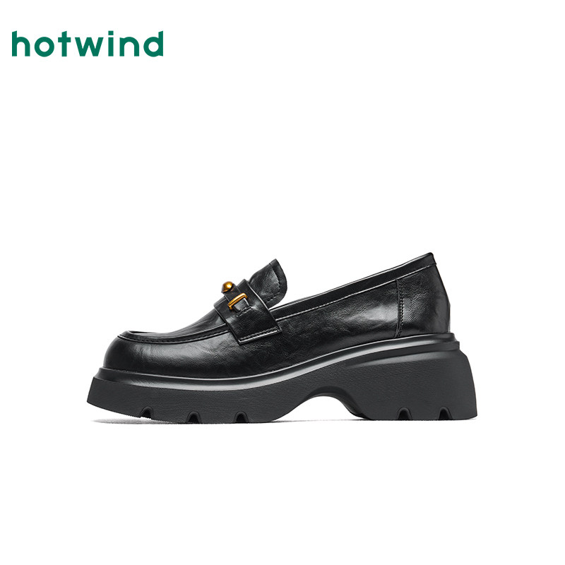 热风厚底乐福鞋女2026年春季新款英伦风黑色小皮鞋百搭增高女鞋子